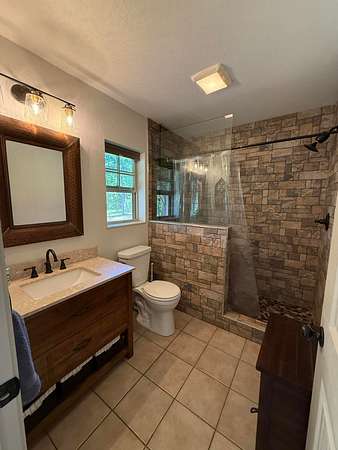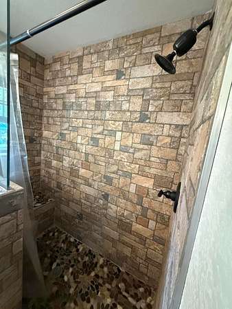 Master suite with private deck access and a luxurious en-suite featuring a beautifully tiled shower. Outdoor Living at Its Finest: