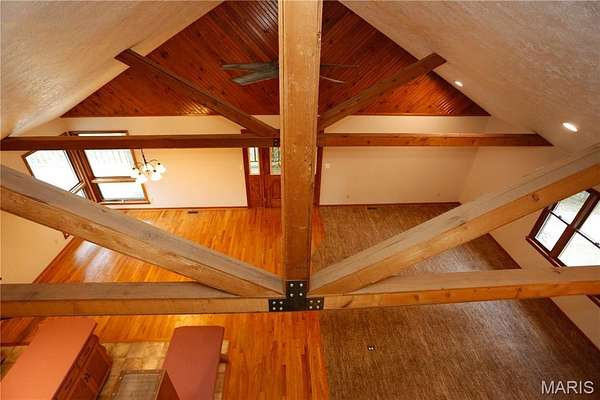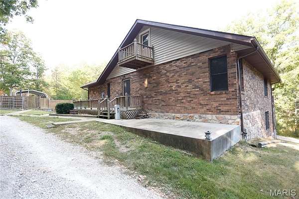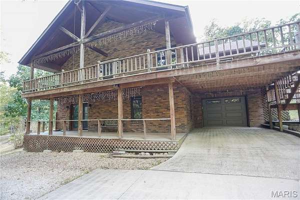 A PIECE OF HEAVEN on 45 Acres of heavily wooded & timber rated land secluded so much, the wildlife is not hesitant to walk the driveway! Sturdy Brick Cabin-like home has 3 beds, 3 bths, basement, upstairs loft, decks, + more. Cathedral Ceiling rise to welcome you with beamed ceilings of wood, just incredible and lots of windows to appreciate your privacy & outside surroundings. Large Shop is perfect for your UTV to store when you are not on the meandering trails, has work bench, great electric & 220 service. This Private Forest is at the end of the road offering you quick commute to City of Cuba, Golf Course & privacy at the same time. Kitchen & dining + Livingroom all open to each other. Custom Oak Cabinets, tons of storage & year 2024 installed; dishwasher, oven/range and hood. Master suite has a Kohler Steam shower, door to side deck & walk-in closet + lots of windows to see that amazing outside. 2nd bedroom on main level has a Jack & Jill full bath, and ample privacy. The basement will blow your mind, this has wonderful open large finished room, bedroom with the making of a kitchette, closet & storage galore, 2 built-in safes one in a room, laundry, more storage & attached 1 car garage plus a great viewing deck. Outside wood furnace has a storage to keep you & wood dry when loading. In addition is the Chicken Condo with fenced outside pickleball area (just kidding) multi building. Quick trip gets you to the Golf Course & Boat ramp on the Meramec River! Move quick!