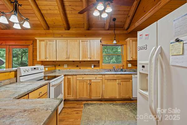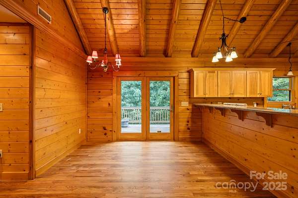 This classic cabin on over 2 acres of wooded privacy offers the perfect blend of rustic charm and modern comfort. Step inside and find open living areas with vaulted ceilings, tongue and groove finishes, and a welcoming cabin feel throughout. The spacious kitchen features high-quality cabinetry and beautiful granite countertops, ideal for entertaining. Enjoy the ease of one-level living with all bedrooms and key elements on the main floor. A generously sized primary suite with a walk in closet and en-suite bath is tucked on one side of the floor plan, with two guest bedrooms, and another full bath on the other. The finished basement adds flexible space for guests, a game room, or family gatherings. A jumbo 2-car garage provides ample room for vehicles and storage. The cozy covered front porch and enormous rear deck offer great spaces for some R&R. Situated in a peaceful, tranquil setting with easy access to downtown Saluda, this home is a serene retreat you'll never want to leave. Extra acreage possible if desired!