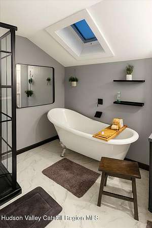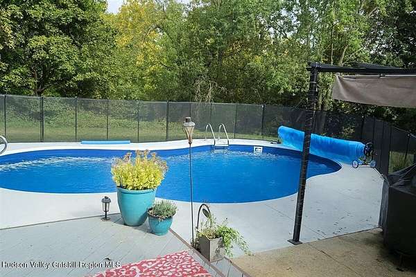 Welcome to 266 Scheller Park Road, set on 1.6 private acres in the Town of Coxsackie. This inviting farmhouse offers 3 bedrooms, 2 full baths, and 1,734 square feet of comfortable living space, blending classic charm with everyday functionality. A covered front porch welcomes you into the main level, where laminate flooring and a semi-open layout create an easy flow between rooms. The living room is anchored by a propane stove, providing a cozy gathering space during cooler months while helping to offset heating bills. The kitchen features oak cabinetry, Corian countertops, ample counter space, and a peninsula with seating, opening naturally to the dining area. A bay window in the dining space overlooks the side yard, and a convenient first-floor laundry closet adds to the home's practicality. A full bath on the first floor offers added convenience for guests and daily living. Toward the rear of the home, you'll find a bedroom and a versatile den, providing space for a home office, guest area, or relaxed retreat, with sliders leading outside. Upstairs, you'll find two additional bedrooms, including the primary suite with an ensuite bath featuring a soaking tub, walk-in shower, and skylight. Outside, the property becomes your own quiet backyard spa, featuring a beautiful inground pool and hot tub, surrounded by patio space and mature trees that create a sense of privacy and calm. The 1.6-acre lot gently slopes to a meandering trout stream that borders the property, offering a peaceful natural backdrop. Additional features include a detached one-car garage, paved driveway, and an outbuilding for storage or utility. Conveniently located just 1.3 miles to the NYS Thruway, with easy access to Albany and Catskill, approximately 2.5 hours from NYC, and close to skiing, golf, breweries, wineries, and farm-to-table dining throughout the Hudson Valley and Catskill Mountains. Seller is in the process of packing. Photos have been virtually modified.