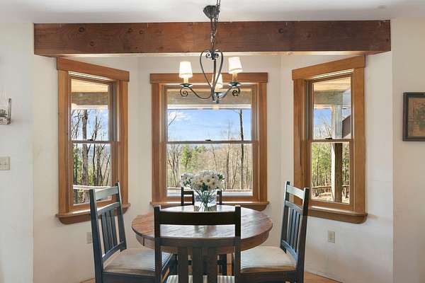 This home is living art, tucked away at the end of the road of lovely homes & hundreds of acres ridgetop, yet only 10 minutes from downtown Brattleboro. Built by a craftsman this home is gracious & energy efficient. Building materials have been harvested from it's 51-1/2 acre woodland. Rooms are thoughtfully designed awash with natural light. Walk up the covered, stone walkway to enter the mudroom. The mudroom provides New England necessities including full bath & walk-in closet. Gaze through the sunroom to overlook the vast landscape. Beautiful floors & custom crafted moldings enhance all spaces. Enter the kitchen through a spaulted black birch doorway to maple & tile flooring, maple cabinets, granite tops & cherry center island. The lay-out flows seamlessly around a beautiful stone chimney built with native stone. The expansive deck invites you to share in its tranquility. Maple, birch & cherry stairs lead to the second floor w/ 2 bedrooms, walk-in closet, dressing area, a bath with double shower, & soaking tub plus laundry room. Enjoy ridgeline views extending beyond the property's southern boundary a mile away. The light-filled, finished, walk-out basement has bedroom, full bath, exercise room & purposefully designed closet storage spaces. Independent wood & propane heating systems provide radiant heat to every floor including the fully plumbed, oversized garage & wired & plumbed living space above. Timely beauty & calm for you & for the many generations that follow.