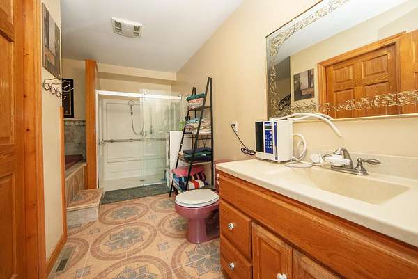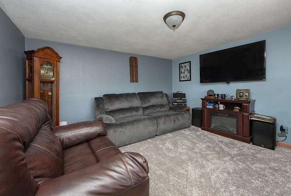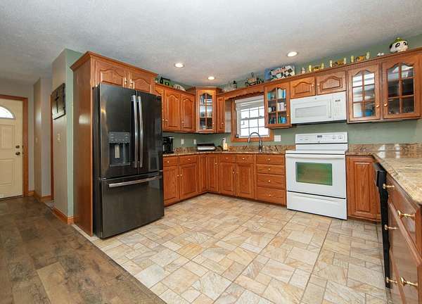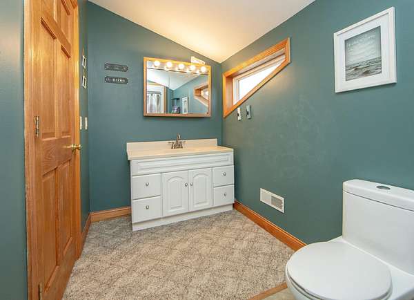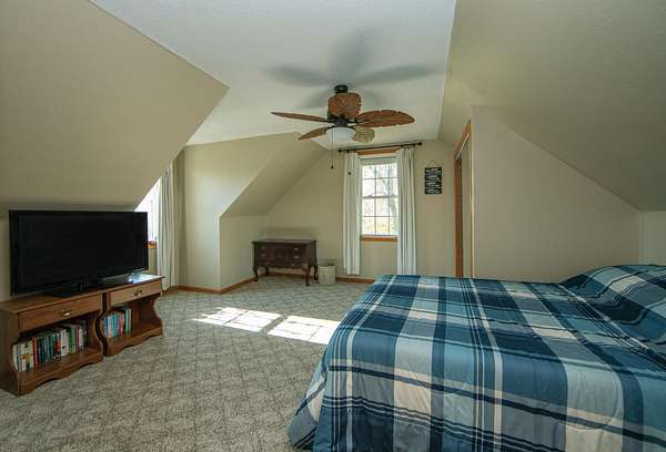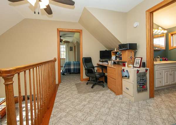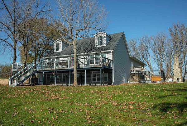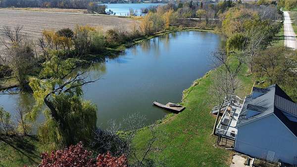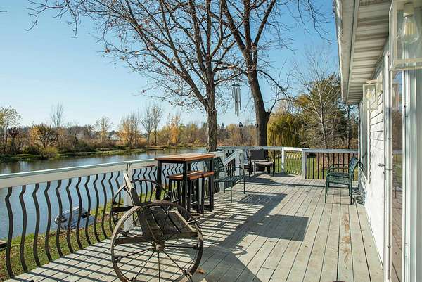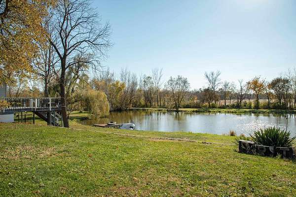 Looking for that peaceful spot where you can enjoy the outdoors but the convenience of being close to town? This 6+ acre gem is just that! You will love strolling around the pond, fishing or just sitting on the expansive deck watching the wildlife. The 1 1/2 story home features 3 levels of finished space Entering into the kitchen from the oversized 3 stall garage, you will find lots of cabinet space, solid surface counters, stainless appliances and bar seating. The laundry is conveniently located on the main level including half bath. The pond view from the living room is sure please with access to the deck. The primary suite also takes in the pond view and is on the main level. The open staircase leads you to the other two bedrooms and bath. The lower level features walk out, another room that can be used as a flex room (nonconforming bedroom, workout room, craft room or play room) and a family room area. Lots of storage plus a tuck under garage round out this amazing property!