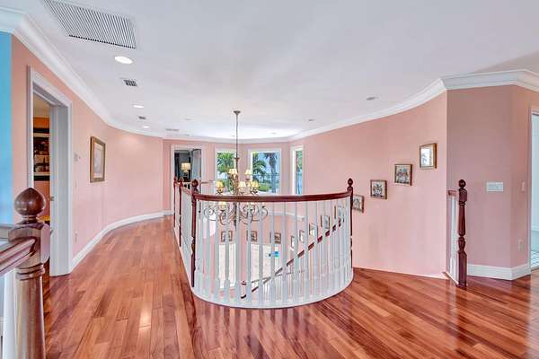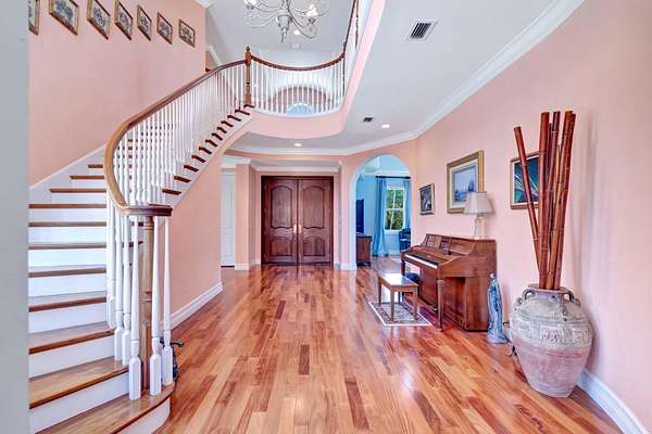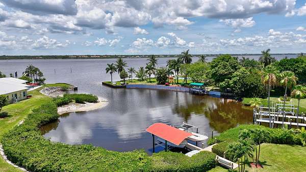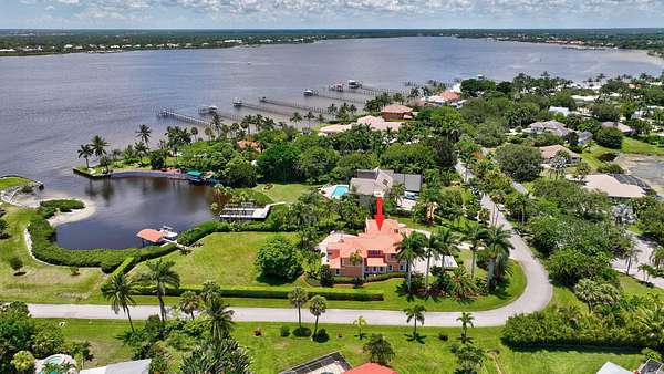 Welcome to Casa de la Cala, a stunning 5BR/3.5BA waterfront estate tucked in a peaceful cove opening to wide water views. Set on 1.66 lush acres—one of the largest parcels in the area—this elegant home features soaring ceilings, a dramatic circular staircase, spacious living areas, and breathtaking views from nearly every window. Enjoy two fireplaces, large closets with built-ins, and an extra room off the garage ideal for extra storage or hobby space. The expansive pool and patio area is a private oasis, perfect for relaxing and entertaining. While a private dock with two boat lifts offers quick access to the St. Lucie Inlet. Just minutes from downtown vibrant Stuart, Casa de la Cala is the ultimate blend of privacy, luxury, and coastal lifestyle. A detailed features list is available.