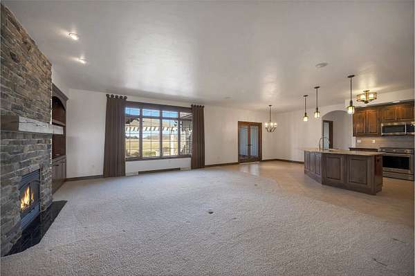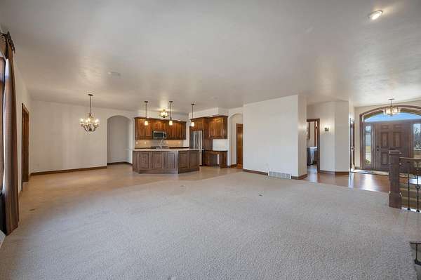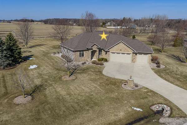 Stunning sprawling ranch set on 1.54 acres in a peaceful country neighborhood with easy highway access. The open-concept layout flows seamlessly from the spacious living room into the dining area and kitchen with pantry, creating a great space for everyday living and entertaining. Enjoy the four-season room with beautiful views of the backyard, perfect for relaxing and watching wildlife. The primary suite offers a large walk-in closet and private ensuite. A heated garage provides plenty of room for vehicles and storage. The expansive basement offers additional storage and potential for future finishing. Step outside to the large backyard featuring a patio and firepit, ideal for relaxing summer evenings. The first-floor laundry adds everyday convenience. Photos are virtually staged.