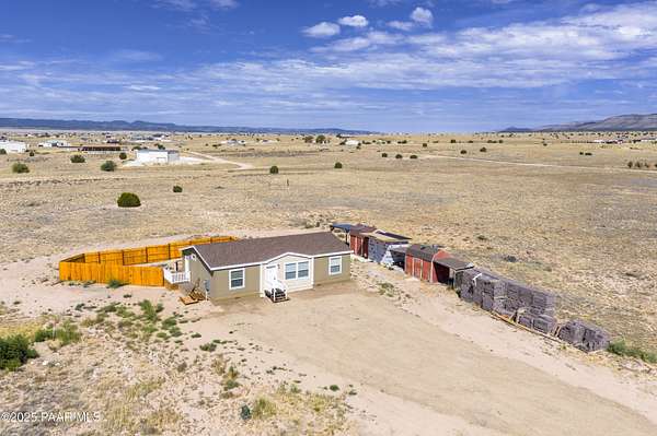 Est $1,741/moNewer 2022 home with 3 bedrooms and 2 bath split floor plan on 4.59 acres! Amazing views, fenced backyard, composite wood deck and finished concrete crawlspace. 3 additional sheds with electricity for infinite possibilities. Close to the Paulden airstrip. Make this your country dream!