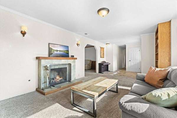 Welcome to a serene mountain retreat set on 2.673 acres and located just minutes from the charming town of Wrightwood and the Mountain High ski resort. This spacious single-story home offers 1,820 sq ft of comfortable living space surrounded by sweeping natural views and peaceful privacy. The inviting foyer opens to a bright living room enhanced by a large bay window, built-in bookshelves, and a cozy fireplace--an ideal spot to unwind after a day in the mountains. The adjacent dining room features rustic wood flooring, a brick-accented fireplace, and convenient access to the outdoor patio, creating a warm setting for gatherings. The well-designed kitchen includes ample wood cabinetry, stainless steel appliances, generous counter space, and a functional layout that flows into both the dining and family rooms. This home offers three bedrooms plus a versatile bonus room perfect for an office, hobby space, or additional guest area. The primary bedroom includes a walk-in closet and an ensuite bath, while the two additional bedrooms are well positioned on the opposite side of the home for added privacy. A separate laundry room and an oversized attached garage add to the home's practicality. Outside, the long private driveway, expansive front patio, and wide-open grounds provide endless opportunities to enjoy the surrounding landscape, stargaze, or take in the peaceful mountain environment. With easy access to Wrightwood's local shops, dining, hiking trails, and ski resort, this property offers a rare blend of seclusion and convenience. Experience the beauty of mountain living at 26601 Big Pines--your perfect full-time home, vacation escape, or investment opportunity.
