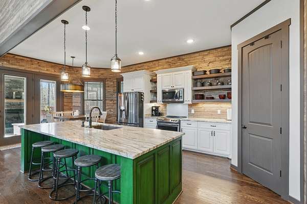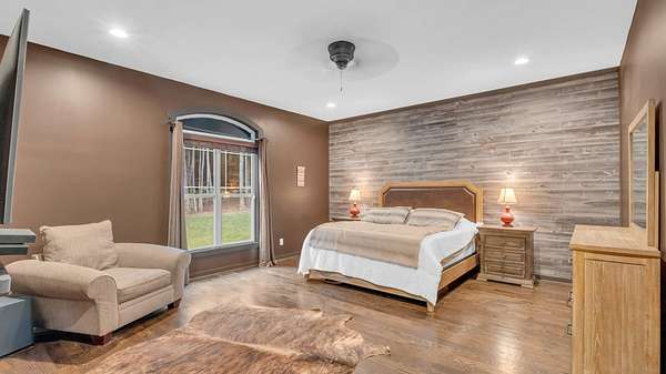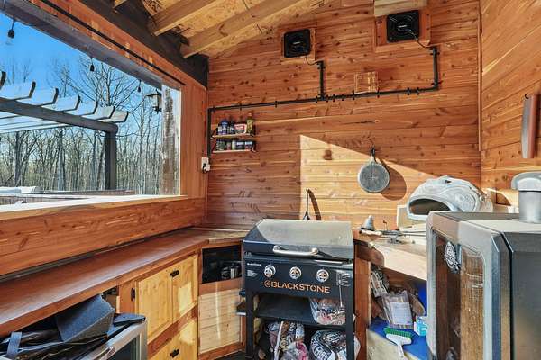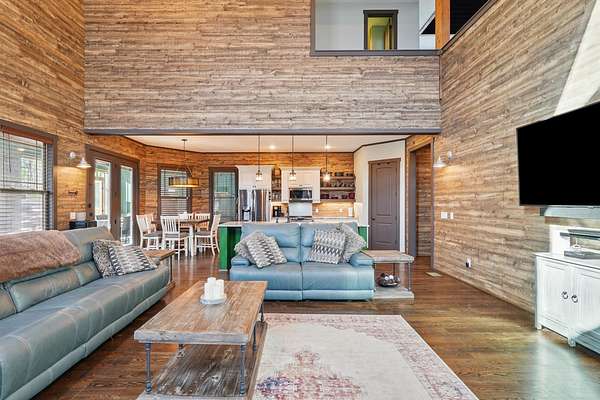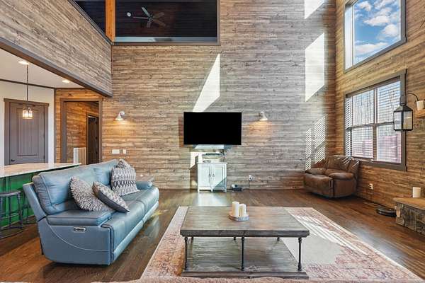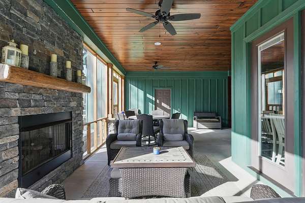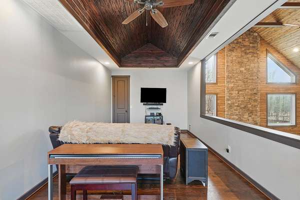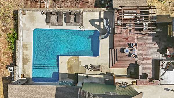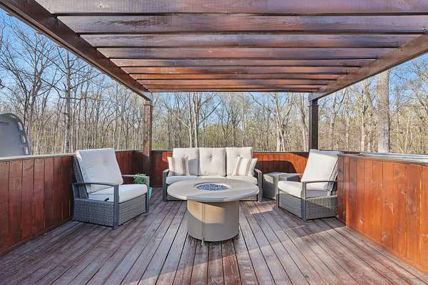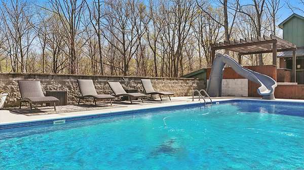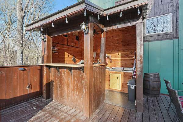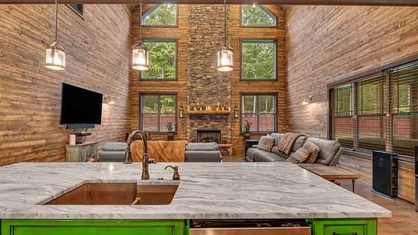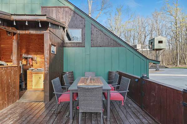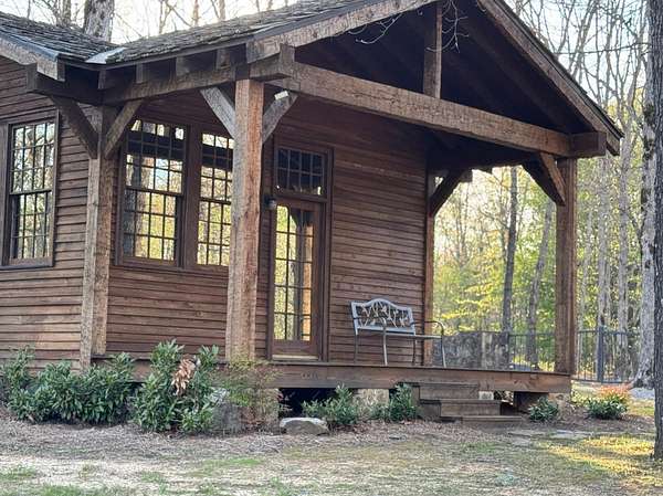 Welcome to the Daydreamer, a rustically chic mountaintop resort you're going to love! This property offers acreage and privacy with 5,000 sq. ft. of living space, including a separate apartment. Enjoy a park-like setting featuring a pool, cabana, outdoor kitchen, pergola, raised-bed organic gardens, a separate gym / sauna space / theater room, and wrap-around and screened porches-all on over seven acres with fruit trees, a ''she shed'' with power, and an actual treehouse that greets your guests at the circular drive. Additionally, there is a three acre green space with one of the community trailheads on the adjacent lot to the left of this property. Step inside, and you'll be amazed by the great room, boasting a 38.5-foot vaulted ceiling with exposed beams and a stunning stacked stone fireplace that reaches all the way up. Flanked by a wall of windows, it feels like you're immersed in the forest behind this beautiful home. The open kitchen and eating area feature exquisite countertops, and the screened porch comes with a fireplace and hot tub. The pool and cabana include an outdoor kitchen with a pizza oven, Blackstone griddle, smoker, sink, and fridge-perfect for entertaining on a grand scale. The interior features synergy wood, rough-hewn solid pine, and hardwoods on the main floor, with hen-pecked cypress upstairs. Solid core doors and 10x10 cedar posts are throughout, with ten-foot ceilings on the main level and nine-foot ceilings above. Every nook and cranny has been meticulously planned. The main level primary suite is spacious and features a large walk-in closet, separate vanities, a grotto-tiled shower with river rock flooring, and a copper basin soaking tub, providing a spa-like experience every day. Upstairs, you'll find two bedrooms, two baths, a loft TV area, and an office area, along with pull-down floored storage above. Enjoy the covered wrap-around porch in the front and the screened porch with a fireplace and 5' x 6 hot tub, large enough to hold 4 - 5 adults. Boasting 1,330 square ft of decking, four feet up to nine feet deep pool, heated, with a swim up ledge four by twelve feet, terra grade liner four years old, four deck jets to arch water into the pool, pool lighting and cover will be good for years of relaxing, kids playing, and excellent exercise. Don't forget to check out the gym with a built-in 2'x6' sauna, as well as an impressive media or game room with NFL-grade turf. There's also a ladder to the loft with storage and a hydraulic lift. Above the garage, there's a 960 sq. ft. studio living space featuring a full kitchen and full bath, perfect for a pool table and game room, or a spacious Accessory Dwelling Unit. There are many other details to explore, so feel free to call for more information. Whether it's your perfect dream home, a weekend getaway, or a short-term vacation rental (STVR - Home is eligible for STVR through the association application process) for income. This property truly offers everything you could want. The Daydreamer rolls all your dreams into one stunning property. Don't miss your chance to see it while your dreams can still come true!