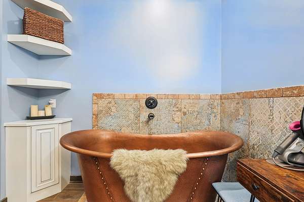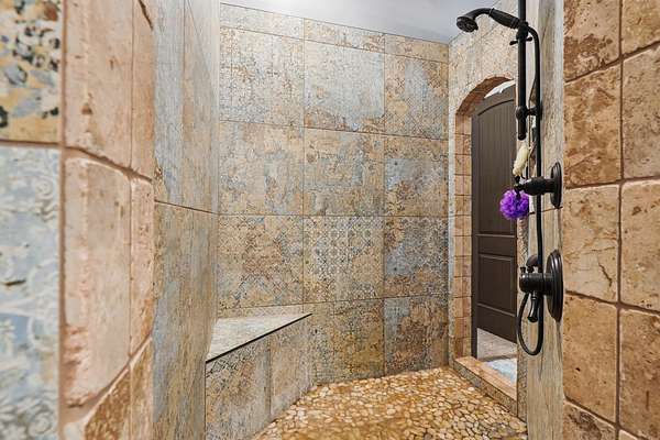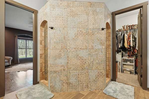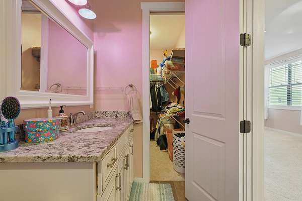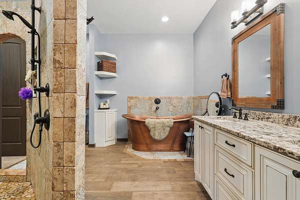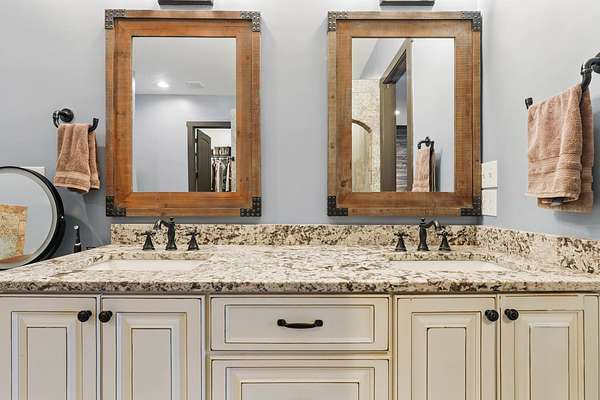 - Beamed Ceilings, Cathedral Ceiling(s), Ceiling Fan(s), Double Vanity, Granite Counters, High Ceilings, High Speed Internet, In-Law Floorplan, Kitchen Island, Pantry, Primary Downstairs, Separate Shower, Smart Thermostat, Tub/Shower Combo, Walk-In Closet(s)