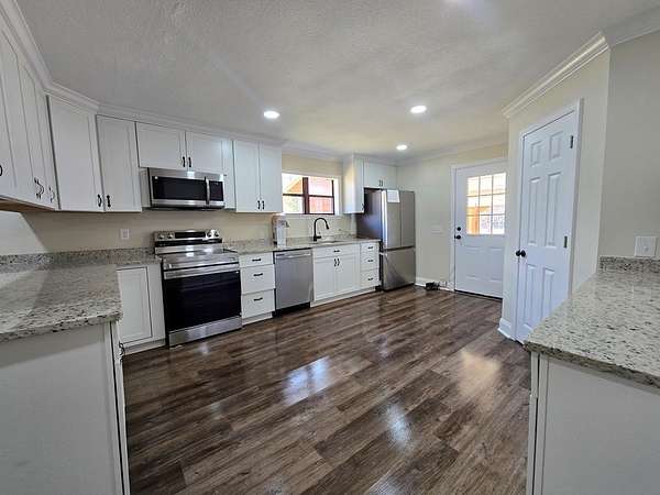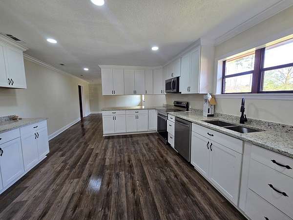 Beautifully remodeled 5 bed, 4 bath home nestled on a little over 6 peaceful acres just outside the city limits. This spacious property features a brand-new open kitchen with new cabinetry, granite countertops, and a large walk-in pantry. The thoughtful layout includes a convenient Jack-and-Jill bedroom suite plus two additional bedrooms, each with their own private bath--perfect for family or guests. You'll love the oversized laundry room, 3-car carport, and the added bonus of a shop for extra storage, hobbies, or workspace. Outdoors, enjoy your own pond, mature pecan trees, and plenty of room to roam. A rare blend of modern updates, privacy, and country charm--this property truly has it all.