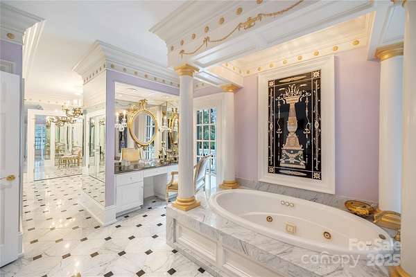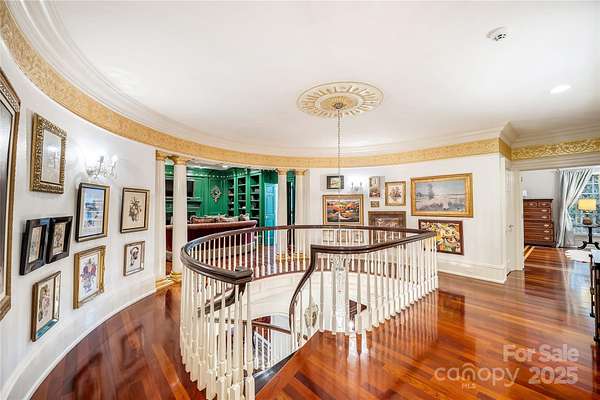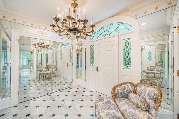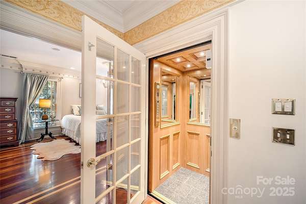 An Elegant Neo-Classical Estate. 2665 Rolling Hills . Monroe, NC. Welcome to Bon Heur, meaning "happiness," nestled on 4.43 private acres. Blending timeless grandeur with modern amenities, this residence offers refined living just 24 miles from Center City Charlotte and 15 minutes from Monroe Executive Airport. Architectural Grandeur & Finishes: Upon entry, a suspended spiral staircase crowned by a rotunda sets the stage for architectural drama. Throughout the home, 24-karat gold leaf millwork, Italian marble floors, decorative inlay flooring, and antique chandeliers showcase exceptional craftsmanship. The hand-painted dining room walls bring artistry to formal dining. The bathrooms are also elevated with Sherle Wagner fixtures. A rare five-story elevator ensures effortless access across every level. Living & Entertaining Spaces: The gourmet kitchen is appointed with high-end appliances and an oversized island, blending function and beauty. A custom glass-walled wet bar and mixology corner adds a touch of sophistication. Six gas fireplaces spread throughout the home provide warmth and ambiance. The lower level is designed for leisure and entertainment, featuring a media room, gaming room, second wet bar, and charming historically referenced brick flooring, which adds timeless character to the space. Private Suites: The second level is home to two grand primary en-suites, each with bespoke luxury features including sublime dressing rooms, custom closets, and private porch access. This level also includes a private den, office, library, kitchenette, and craft room, creating a self-contained domain of comfort and refinement. The third level offers two additional en-suite bedrooms, ensuring space and privacy for family or guests. Outdoor Elegance: Expansive 3,000 square feet of Haint Blue-painted wraparound porches with Chippendale railings extend the living space, overlooking a backyard designed for both beauty and function. A dedicated culinary production area and 35 varieties of rose bushes provide an exquisite setting for outdoor living. Additional Highlights: Climate-controlled 1,924 sqft garage, No HOA, Full sprinkler system and invisible fencing, Gated property with fully lighted landscaping, Whole-house generator, Air and water filtration systems, 50-year architectural shingles. Bon Heur is more than a home-it is a rare masterpiece of luxury, and Southern Charm, offering an unparalleled lifestyle in a coveted community.