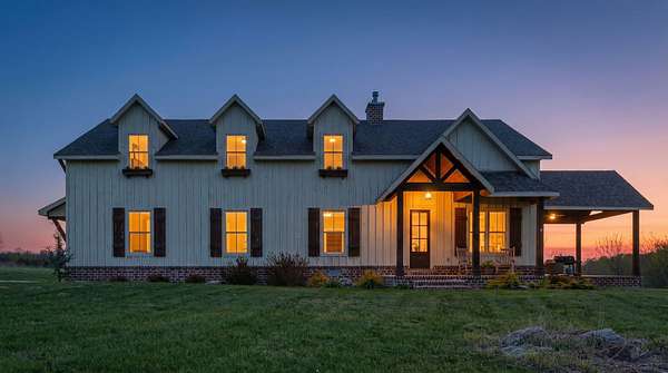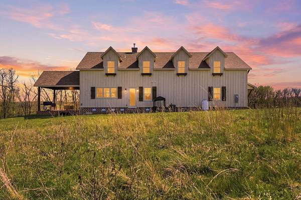 Welcome to Your Private Missouri Countryside Estate! 2665 W Old Limey Road, Brookline, MOEscape to the ultimate modern farmhouse retreat on nearly 10 breathtaking acres of rolling Missouri countryside. Built in 2023, this stunning 4,269 sq ft custom farmhouse offers the rare combination of luxury finishes, generous living space, and the wide-open land lifestyle so many buyers are searching for -- all just minutes from Springfield.From the moment you turn onto the long, private driveway and the home comes into view against the backdrop of lush green land and mature woodland, you'll know this property is something truly special.Inside, the home impresses at every turn. Soaring ceilings and an abundance of natural light pour through oversized windows, flooding every room with warmth and energy. The chef's kitchen is anchored by a show-stopping porcelain farmhouse sink, a large center island perfect for gathering and entertaining, and finishes that strike the ideal balance between rustic charm and modern elegance.Curl up by the wood-burning fireplace on cool Missouri evenings, or step out onto the covered porch off the main living area to take in the sweeping panoramic views of your own private acreage. Whether it's your morning coffee at sunrise or an evening bonfire under the stars, the outdoor living here is simply unmatched.With 5 bedrooms, 3 full bathrooms and 1 half bath, and a versatile second living room upstairs, the layout offers flexibility for a variety of living arrangements, home offices, playrooms, or guest accommodations. The 3-car garage offers ample space for vehicles, equipment, and all the gear that comes with the outdoor lifestyle you've always wanted.The 9.83 acres feature a beautiful mix of open green land and wooded areas, offering endless possibilities!