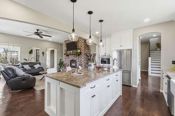 - Built-In Electric Oven, Dishwasher, Disposal, Electric Water Heater, Microwave, Propane Cooktop, Refrigerator, Water Softener Owned
