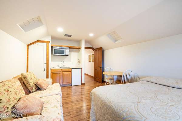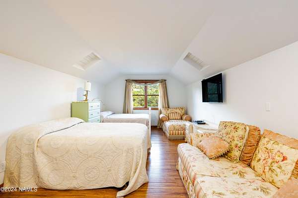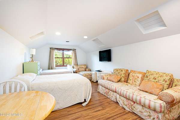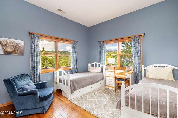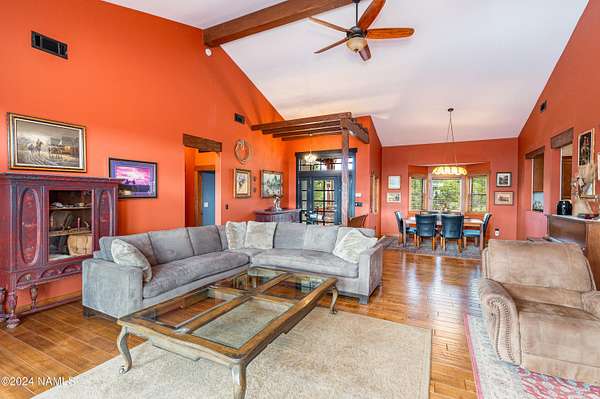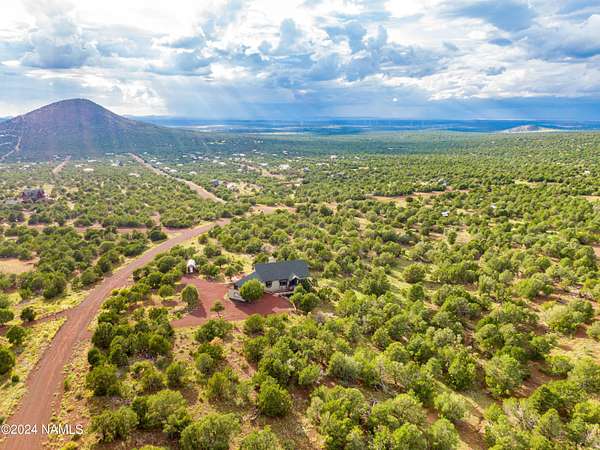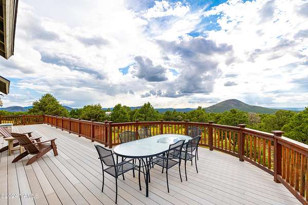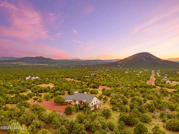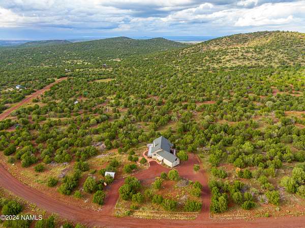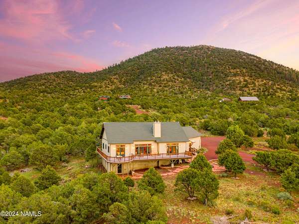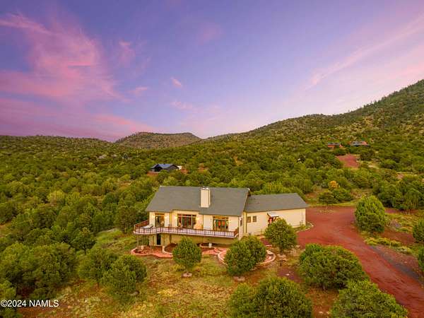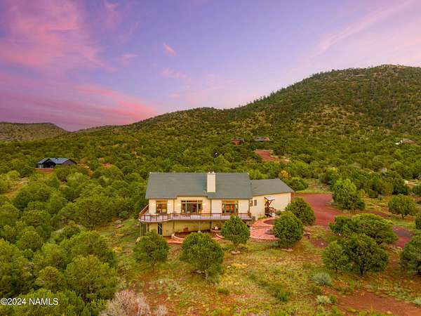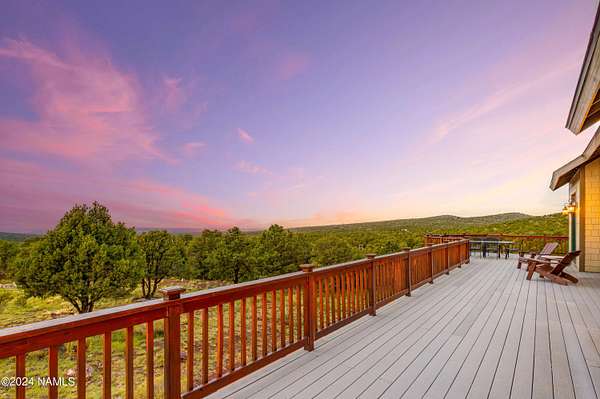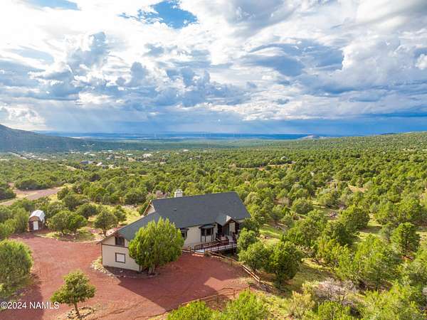 Welcome to 2667 E Overlook Dr in Williams, Arizona--your gateway to luxury and adventure. This stunning property, located in the exclusive gated community of Cedar Mountain Heights, offers over 2,600 square feet of luxury country living on 6 acres of high desert chaparral. It's the perfect retreat for families looking for a vacation home or for an investor seeking a lucrative VRBO opportunity after waiting period is satisfied. Situated just 50 miles south of the Grand Canyon, 15 miles from Route 66 and Bearizona, 42 miles to Flagstaff, and 70 miles to Sedona, this property serves as an ideal base for exploring Northern Arizona's most iconic destinations. The area is famous for its exceptional stargazing--imagine viewing the entire Milky Way during new moons and offers endless outdoor activities, including camping, off-roading, and exploring ancient native ruins. The home itself is a masterpiece of design and comfort, featuring hand-scraped solid hardwood floors, vaulted 16-foot ceilings, and a harmonious blend of modern amenities with reclaimed rustic accents. The fully equipped entertainment kitchen, complete with stainless steel appliances, granite countertops, and plenty of counter space, is perfect for hosting large gatherings. There are four spacious bedrooms, including a 300-square-foot master suite that boasts a cozy wood-burning fireplace, a luxurious spa tub, and direct access to the expansive wrap-around deck with breathtaking views of the western horizon. A 500-square-foot private studio suite above the garage comes with its own kitchenette, offering additional privacy and convenience. The living room, master bedroom, and second bedroom all open onto the deck and the stunning views of the vast landscapes stretching to the horizon. Outside, you'll find incredible spaces for entertaining and relaxation, including a large circular flagstone patio with a generous fire pit, perfect for gatherings and stargazing. The property is adorned with beautiful juniper trees and offers stunning views of wind farms, desert landscapes, and the Coconino National Forest, which is just a short walk away and features numerous trails to explore. Cedar Mountain Heights, an exclusive gated community with under 30 parcels, provides a serene, rural lifestyle at an elevation of 6,500+ feet. Residents enjoy clean air, moderate summers, crisp white winters, and the chance to observe a diverse range of wildlife, including elk, deer, mountain lions, and hummingbirds. The HOA ensures that the road is maintained year-round, including snow removal during the winter months, making the property accessible throughout the year. Currently operating as a successful VRBO, this property presents a fantastic investment opportunity with a proven rental history. Potential buyers interested in continuing the short-term rental model can inquire for more details on rental regulations and income potential. Additionally, the property offers room for customization with an unfinished basement that has been pre-designed for a movie theater space, ready for your personal touch. The sturdy construction, featuring 2x6 walls, also provides ample storage space and possibilities for future expansion. Utilities for the home include hauled water, propane for heating, electric service provided by Arizona Public Service, and a conventional septic system. The HOA takes care of road maintenance, ensuring easy access year-round, including during snowy winters. 2667 E Overlook Dr is more than just a house it's a lifestyle. Whether you're seeking a peaceful family getaway, an adventure-filled base for exploring Northern Arizona, or a profitable investment property, this home offers it all. Don't miss the opportunity to own this exceptional property in the heart of the great high desert of Northern Arizona.