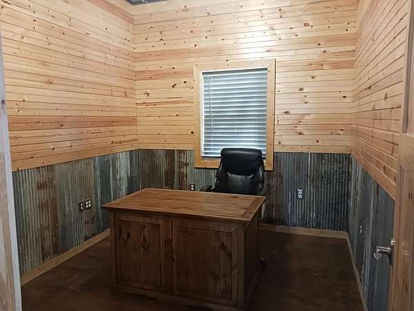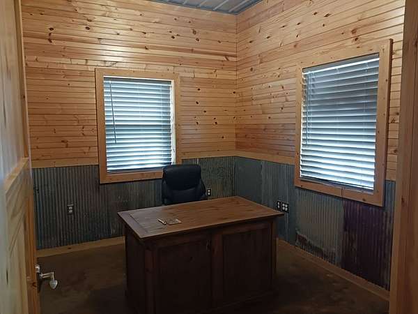 Office Building Description Location: 7 Highway, Clinton, MO This charming office building offers a unique blend of functionality and rustic aesthetics. It features: Four Offices: Each office is designed for optimal productivity, with ample natural light and space for furniture and equipment. Two Bathrooms: Conveniently located for both staff and visitors, these bathrooms provide modern amenities while maintaining a cozy feel. Kitchen: A fully equipped kitchen area allows for meal preparation and breaks, fostering a communal atmosphere among employees. Workspace: An open workspace area encourages collaboration and teamwork, making it ideal for group projects or meetings. Interior Design: The interior is finished with beautiful knotty pine siding, creating a warm and inviting environment. The rustic charm of the wood adds character and a sense of comfort, making it a pleasant space for work. Overall, this office building on 7 Highway combines practical office features with a cozy, rustic ambiance, perfect for any business looking to establish a welcoming presence in Clinton, MO. Would you like more details or specific features highlighted?