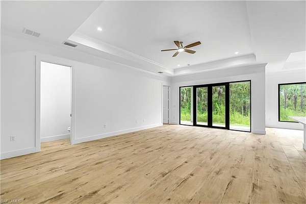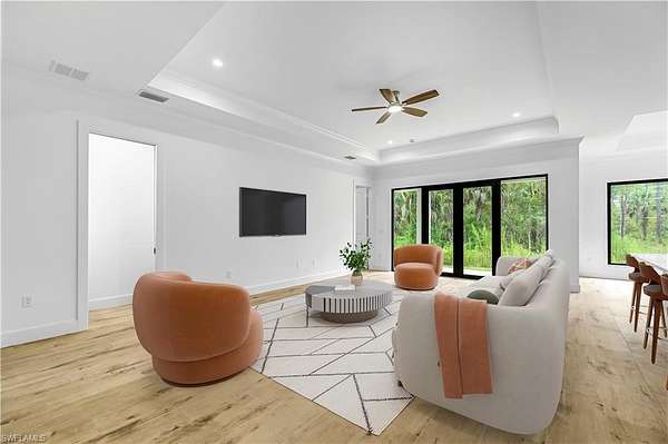 Amazing home being built in a 2.27 acres rare 100% upland lot, in the area of Golden Gate Estates, will feature 3 bedrooms + Den, 2.5 bath, & 2 car garage! Living area of 1,900 sq.ft and a grand total of 2,627 sq.ft. Upgrades include wood plank porcelain tile throughout, crown molding, quartz countertops, stainless steel appliances, and solid wood cabinets! The living room and master suite will boast tray ceilings. Master wing will feature an oversized bedroom, 2 spacious Closets, double vanity, and glass door enclosed shower. The outside of this home will not disappoint either with a Summer Kitchen and a beautiful landscape, auto sprinkler system, and a large lanai. Impact resistant windows/doors! Your brand new home will be ready in November 2025! *Pictures are from another same model home*.