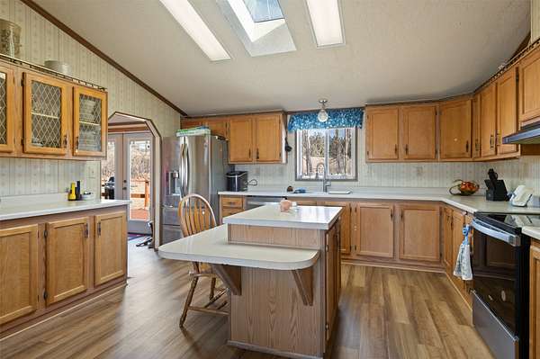 Enjoy breathtaking views of the Bitterroot Mountain Range from this well-maintained 3-bedroom, 2-bath home offering 1,848 square feet of comfortable living space on 2.4 peaceful acres just south of Stevensville. With quick access to Eastside Highway, you'll appreciate the convenience of being minutes from town while still far enough away to enjoy the quiet and near end-of-the-road privacy this property provides. Inside, the home offers a spacious layout designed for everyday living and easy entertaining. Large windows capture stunning mountain views and bring in abundant natural light, creating a warm and inviting atmosphere throughout. Outside, the property truly shines. A fantastic 30' x 32' shop provides ample room for projects, vehicles, or hobbies, while the attached 14' x 30' lean-to offers additional covered storage for equipment, recreational toys, or outdoor gear.
