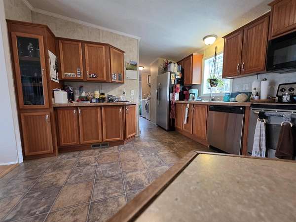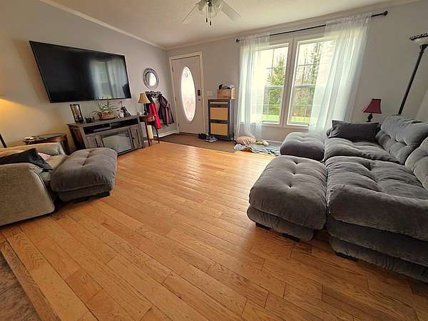 Welcome to your own peaceful slice of Vermont—where evenings are filled with the soothing sounds of spring peepers and mornings begin with fresh country air. Set on 2.5 private acres, this well-maintained 2006 double-wide offers the perfect blend of comfort, space, and connection to nature. Step inside to a bright, open-concept kitchen and living area—ideal for gathering, entertaining, or simply enjoying everyday life. Cozy up by the fireplace, or retreat to the second living room with its own fireplace—creating the perfect flex space for relaxing, movie nights, or a quiet escape. The home features three bedrooms, including a spacious primary suite designed for comfort and privacy. Outside, this property truly shines. A fenced-in front yard and additional dog fencing in the backyard—complete with a convenient doggy door—make this a dream setup for pet lovers. Spend warm summer days by the above-ground pool with its surrounding deck, host evenings by the outdoor fireplace, or simply unwind and take in the peaceful setting. A two-car detached garage offers ample storage and workspace, while the full basement—currently accessed via bulkhead—provides excellent storage with future potential. Plans are available for adding interior stairs, giving you even more flexibility down the road. If you’ve been looking for a home that offers space, comfort, and that unmistakable Vermont charm—this is the one.