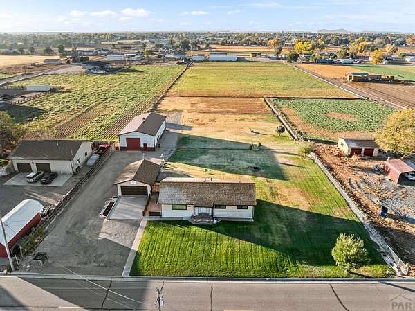 Discover your dream home nestled in the picturesque St. Charles Mesa area of Pueblo, just moments from the serene Arkansas River and lively downtown. This expansive 5-bedroom, 2-bath residence is set on a sprawling 1.5-acre lot, featuring a well for maintaining lush lawns and gardening. The standout 30 x 60 ft shop is equipped with heating, cooling, and a convenient 1/4 bath, providing ample space for hobbies and storage. Inside, enjoy modern upgrades such as granite countertops in the kitchen and main bath, a stylish new vanity, and raised panel oak cabinets adorned with a beautiful backsplash. The finished basement offers two non-conforming bedrooms, a spacious family room, and a cozy fireplace, perfect for family gatherings. With plenty of room for animals and the stunning Mesa landscape surrounding you, this home is an ideal sanctuary for those who appreciate nature and comfort.