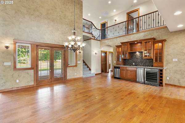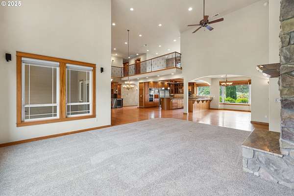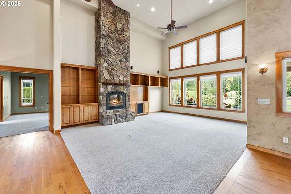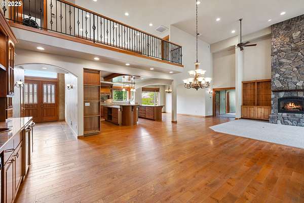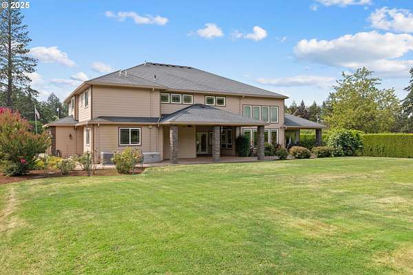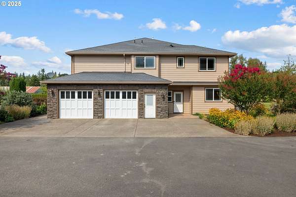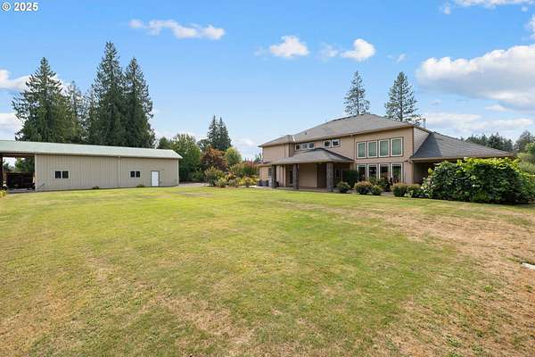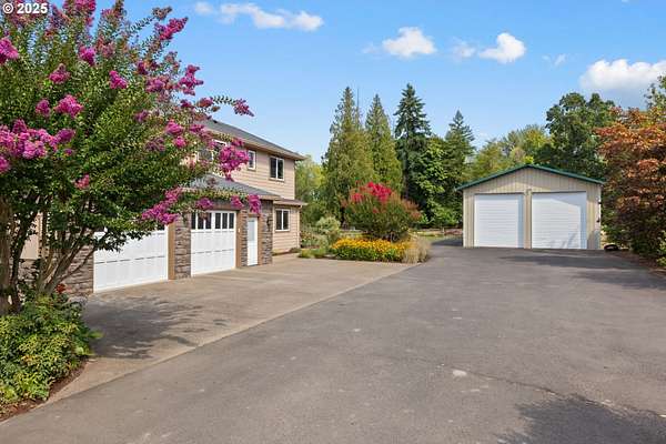 OPEN HOUSE SUNDAY 12-2PM. 2007 Custom Built home on 2.43 acres, 48x26 shop has 12' tall doors w/26x12 lean-to, wired for 240, sink w/running water, work bench. 4388sqft 4 bedrooms, 3.1 bath, office/den/bonus room/family room. Kitchen has cherry cabinets, 2 built-in ovens, water pot filler, lg island, built-in refrigerator and freezer, lg eating bar, granite, entire downstairs hardwood/carpet/tile floors are radiant heat along w/both upstairs bathrooms floors. Formal dining room, 2nd dining room w/custom wine bar has built-in cherry cabinets, wine refrigerator, ice maker, dishwasher, sink and French doors to lg extensive covered patio plumbed for outdoor kitchen w/ceiling fan. Livingroom has 19ft ceilings, 19ft stone fireplace w/gas heat, built-in cabinets, surround sound, 2 ceiling fans, custom window trim and upper blinds are remote controlled. Huge master suite on main floor has covered patio w/hot tub, walk-in shower, jetted tub, 2 walk-in closets, washer/dryer, his/her sinks. All closets have custom closet organizers. Central vacuum system. Office on main w/built-ins and door to covered patio. Walk through pantry has cabinets, sink, refrigerator, heated tile floors, granite. Upstairs has 3 lg bedrooms, 2nd office, storage room and family room, laundry room w/sink, cabinets. Garden, fruit trees, apple trees, grapes, several garden areas w/sprinkler system, nicely landscaped yard, well 20 gallons min, 125ft deep, 2 AC units, generator 18-kilowatt, water softener w/pressure tank new in 2025, security system, riding lawn mower, circular driveway, garage is extra wide and deep w/lots of shelving, cabinets and storage.