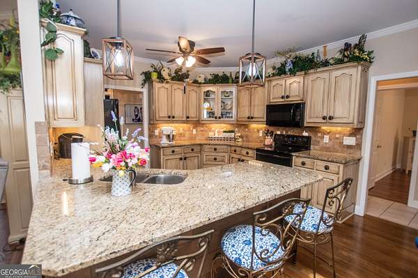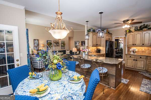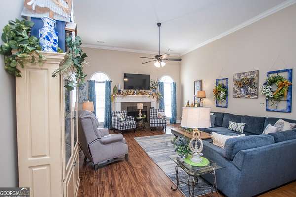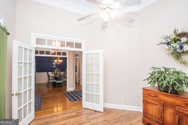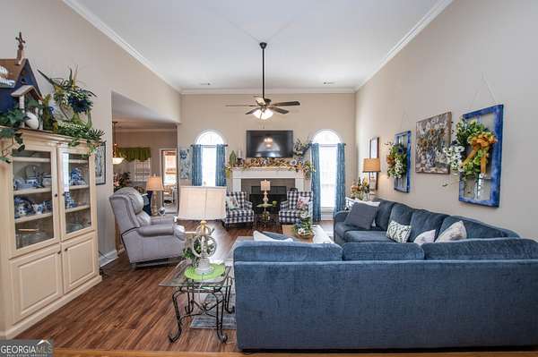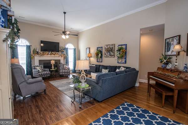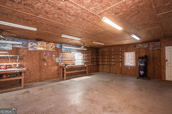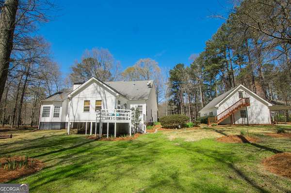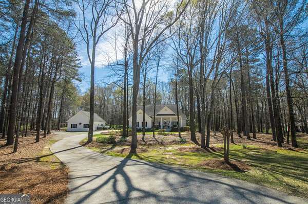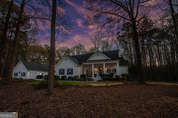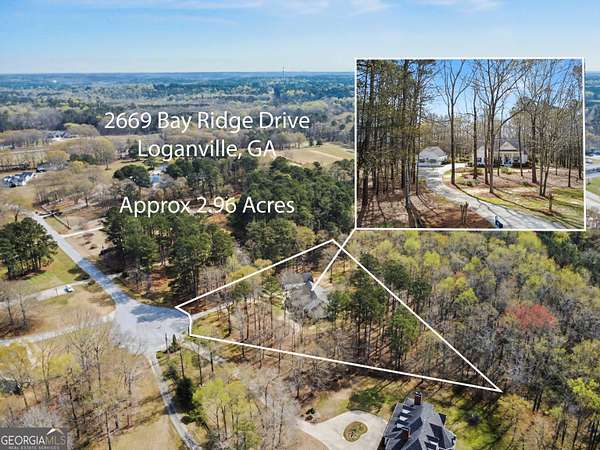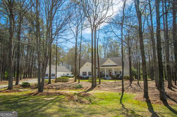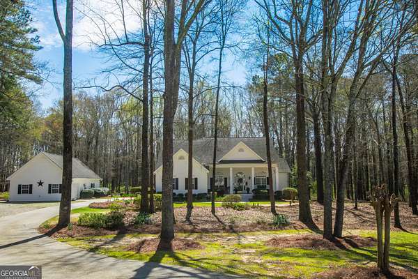 Welcome to 2669 Bay Ridge Drive! This beautifully maintained 3-bedroom/2-bathroom ranch home sits on 2.96 private acres just minutes from downtown Loganville. From the charming rocking chair front porch to the thoughtfully designed interior, this home offers plenty of space to enjoy. The home features an open-concept layout with a split bedroom design. Step inside the welcoming foyer, which opens to a spacious fireside great room seamlessly connected to the kitchen-perfect for everyday living and entertaining. Just off the foyer, French doors lead to a flexible finished space ideal for a home office, sitting room, or playroom. The kitchen features an eat-in breakfast area, breakfast bar, lots of cabinets and counter space, a convenient computer nook, double pantry, along with a formal dining room. The oversized master suite includes tray ceilings, a tiled bath with double vanities, a walk-in shower, soaking tub, and a spacious walk-in closet. Two additional bedrooms and a full bath are located on the main level, along with a mudroom/laundry room just off the kitchen. Enjoy your morning coffee in the enclosed sunroom, complete with its own separate portable HVAC system for year-round comfort. Outdoor living is just as inviting, with a rear deck perfect for grilling and entertaining, mature oak trees that offer plenty of shade, plus space ideal for a garden. The 20x40 detached workshop provides additional garage parking and storage space, includes a bathroom with sink, and features a lean-to ideal for boat parking or additional covered storage-making it perfect space for a workshop or hobby area. The upstairs loft above the workshop offers additional storage space. Newly installed septic system. Loganville High School District. Conveniently located near schools, shopping, dining, boutiques, and golf courses-with no HOA - this property truly has it all.