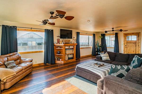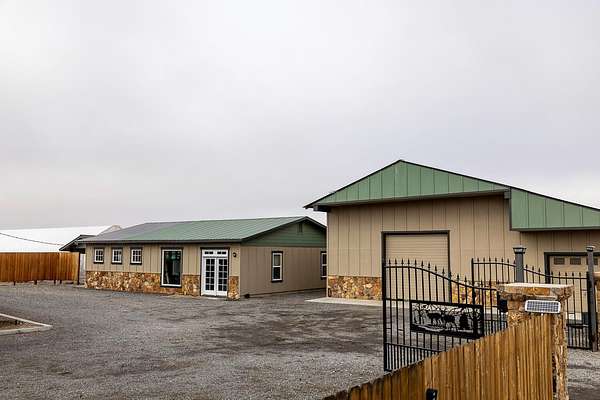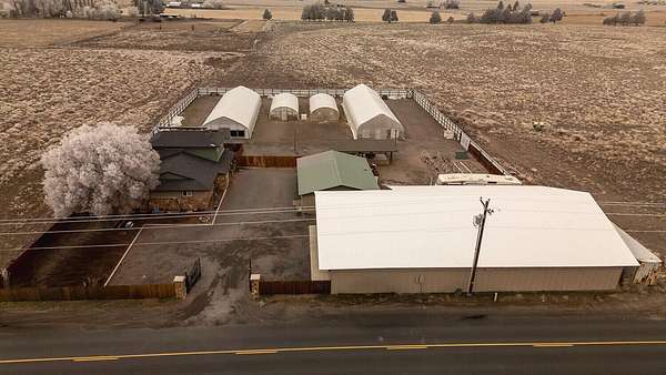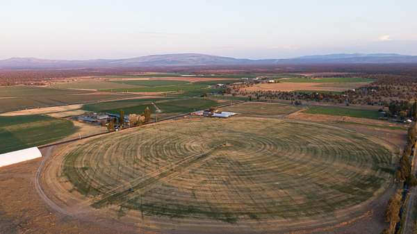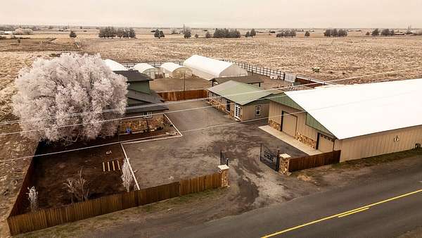 Wake up to sweeping Cascade Mountain views from this gated farmhouse estate just 20 minutes east of Bend, Oregon. The 67.9-acre property includes 35.6 acres of COI irrigation and is well suited for a variety of agricultural uses. Improvements include four irrigated greenhouses, two Valley 7000 Series irrigation pivots, excellent soils, and dependable water resources. Structures consist of a 73' x 200' (15k sq ft) clear-span industrial building, a fully insulated 4,502 sq ft shop , and a 1,344 sq ft office/bunkhouse with an additional 2 bedrooms, one bath, living area, and laundry. Recent upgrades include a new well pump, acrylic roof coating on the shop, and fresh exterior paint. Electrical infrastructure features 200-amp residential service, 400-amp shop service, three-phase irrigation power, and 200-amp pump house service. The sale includes three Map & Tax Lots.