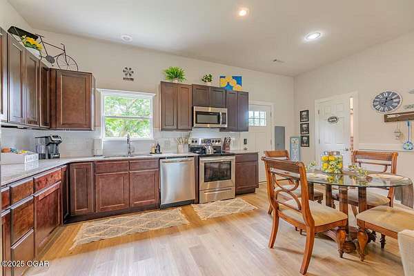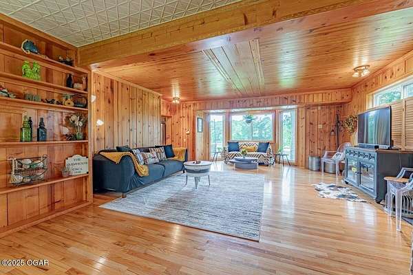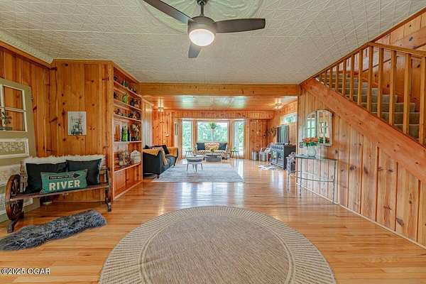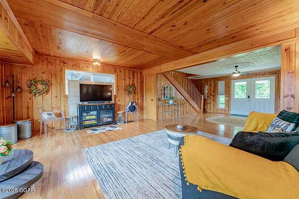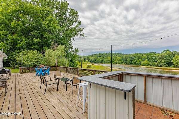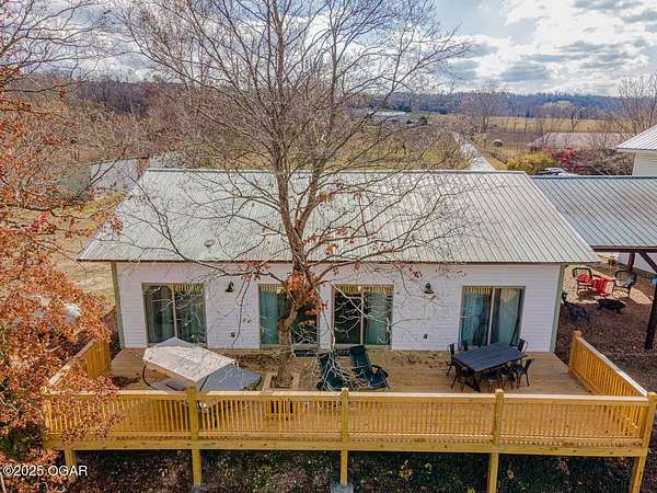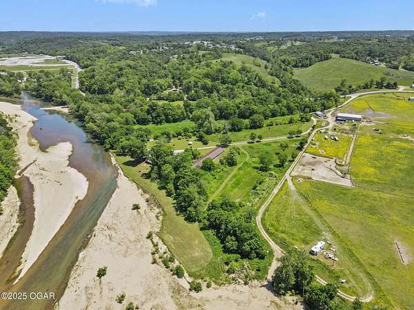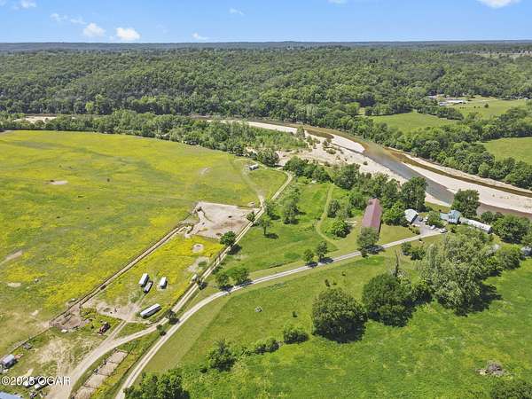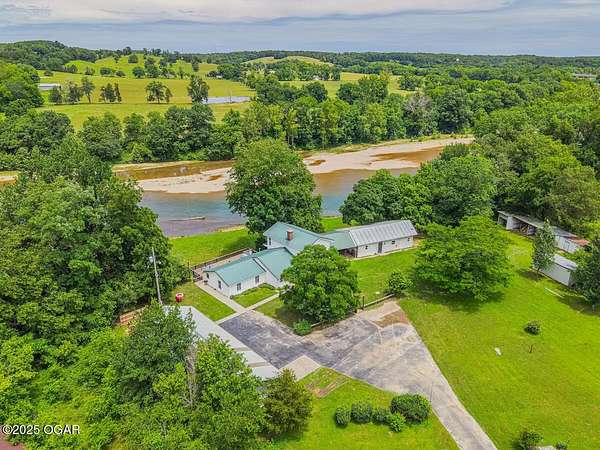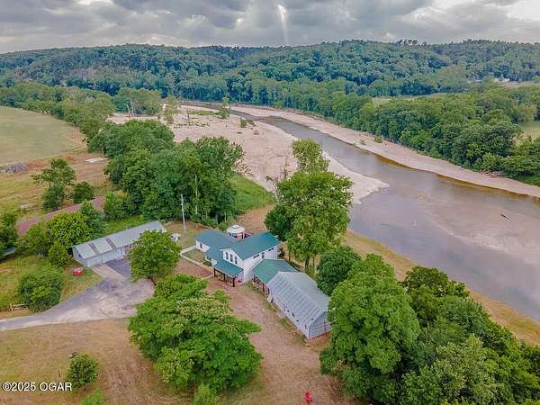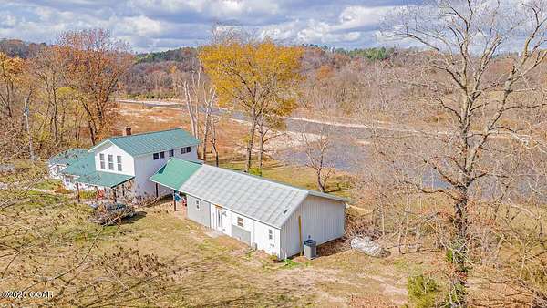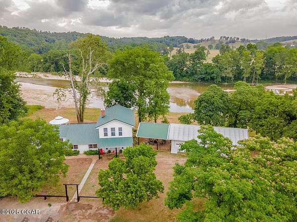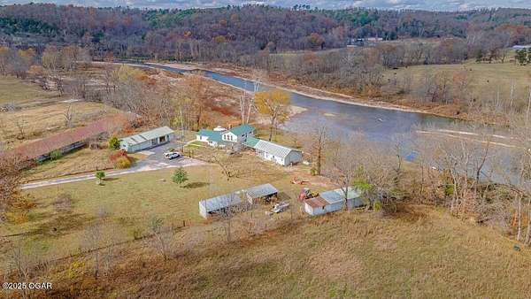 Rare opportunity to own approximately 278 feet of river frontage on the beautiful Elk River, situated on 19+/- acres. This fully furnished property is currently operating as a successful Airbnb, offering a turnkey investment or private retreat. The property features two homes, both with back decks overlooking the river. The main house offers an oversized foyer, a spacious living room and dining area open to the kitchen with a large island, a large bedroom and full bathroom on the main level, plus a second story with a bedroom area, living space, and another full bathroom. The second home includes two bedrooms and two full bathrooms, also with river views. Outdoor amenities include a fire pit area, two storage sheds, and a 1,200 +/- sq ft barn for additional storage or potential future use. Located less than 5 minutes from Highway 49, 25 minutes from Bentonville, and 15 minutes from Bella Vista, this property offers exceptional privacy, beautiful scenery, and endless possibilities for riverfront living and income potential.