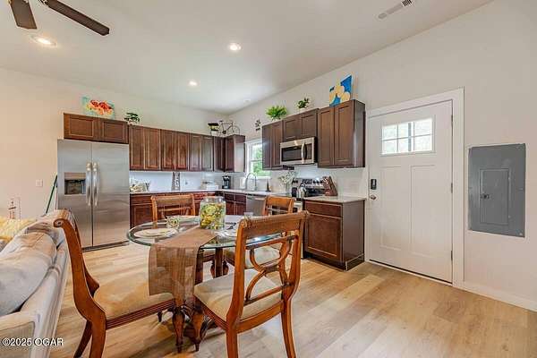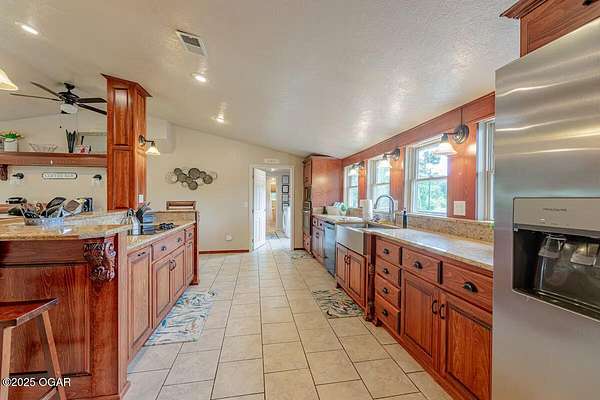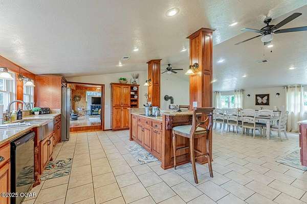 - Ceiling Fan(s), Eat-In Kitchen, Granite Counters, Kitchen Island, Laminate Counters