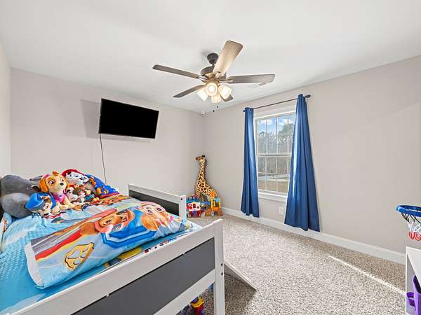Upstairs, the oversized bonus room adds another layer of possibility--movie nights, fitness, hobbies, or a second hangout area. Step outside to the covered deck and take in the 1.5-acre lot, a rare find with room to play, plant, build, or simply enjoy some breathing room.