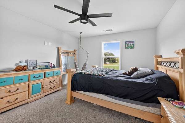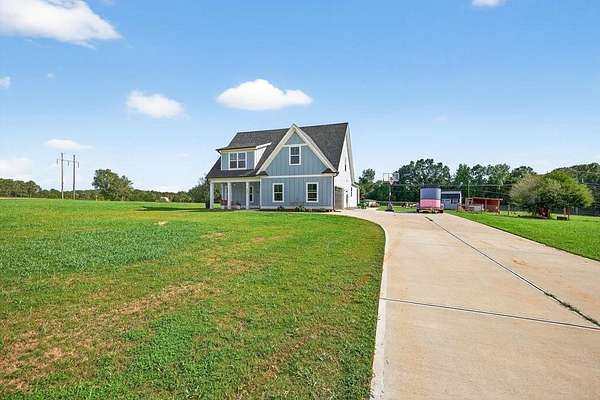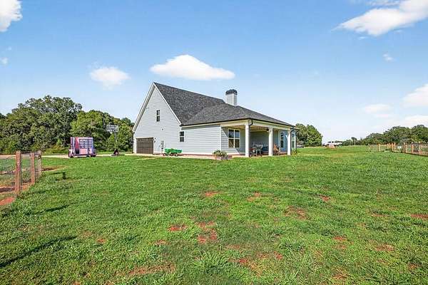 Welcome to your private retreat in Bogart! This adorable farmhouse is just over a year old and is nestled on 8 spacious acres, ideal for peaceful living! Situated far from the main road on a private community drive, you will love quiet mornings on your front porch swing! This property is a homesteader's dream with farm fencing for your animals, an established garden, and a chicken coop. Step inside to discover a warm and welcoming open-concept living space filled with natural light! The heart of the home is the oversized kitchen complete with a large island that is perfect for gathering, cooking, and entertaining! The spacious primary bedroom is located on the main level, offering privacy and ease of access. Attached is the primary en suite with double vanities, large tiled shower with double shower heads and glass door, and a spacious closet! Upstairs, you'll find three additional bedrooms, two full bathrooms with tiled showers, a great bonus room, and excellent attic storage with spray foam insulation- ideal for keeping things organized without sacrificing living space! Enjoy evenings on your covered back porch. While it feels like a world away, you're minutes away from Athens and just over an hour from Atlanta, giving you the best of both serenity and convenience! Extremely low maintenance HOA to maintain shared drive without being too restricting! Don't miss this opportunity to own a fully functional mini farm with modern comforts and timeless charm! Welcome to Bear Creek Meadows Drive!