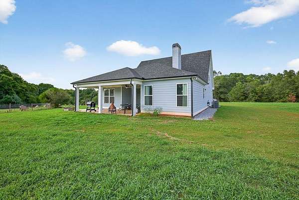 Welcome to your private retreat in Bogart! This adorable farmhouse is just a few years old and is nestled on 8 spacious acres, ideal for peaceful living! Situated far from the main road on a private community drive, you will love quiet mornings on your front porch swing! This property is a homesteader's dream with farm fencing for your animals, an established garden, and a chicken coop. Step inside to discover a warm and welcoming open-concept living space filled with natural light! The heart of the home is the oversized kitchen complete with a large island that is perfect for gathering, cooking, and entertaining! The spacious primary bedroom is located on the main level, offering privacy and ease of access. Attached is the primary en suite with double vanities, large tiled shower with double shower heads and glass door, and a spacious closet! Upstairs, you'll find three additional bedrooms, two full bathrooms with tiled showers, a great bonus room, and excellent attic storage with spray foam insulation- ideal for keeping things organized without sacrificing living space! Enjoy evenings on your covered back porch. You're minutes away from Athens and just over an hour from Atlanta, giving you the best of both serenity and convenience! Extremely low maintenance HOA to maintain shared drive without being restricting! Don't miss this opportunity to own a fully functional mini farm with modern comforts and timeless charm! Welcome to Bear Creek Meadows Drive!