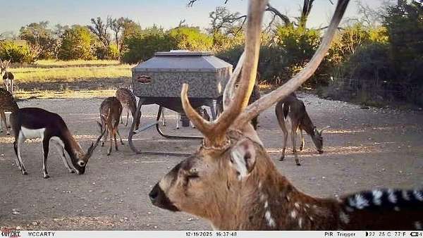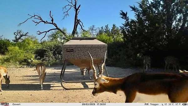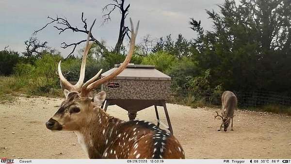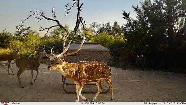 The property is home to thriving populations of approx. 50 whitetail deer, approx. 30 axis deer, and approx. 30 blackbuck antelope. The habitat has been carefully maintained to support a healthy ecosystem, with native vegetation and supplemental feeding in place to ensure year-round wildlife activity.