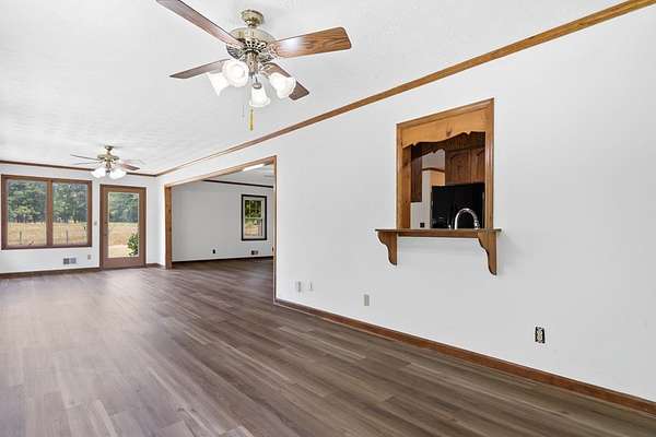 Here you go!! Quintessential farmhouse sitting on 13.16 private acres in Henry County near Rock Spring elementary & 11 miles from Ola High school. This property was well loved and now ready for new owners. Newly installed LVP flooring and freshly painted throughout. There's a HUGE family room with a wall of windows looking out to pasture. There's a primary on Main, two Living rooms w/a fireplace & wood burning stove and dining room. Upstairs are beautiful hardwood floors along with 3 additional bedrooms. There's a large unfinished basement with both interior & exterior entrances. Gorgeous land with mature trees! RARE find! This property sits in the middle of two other large acreage tracts - to the west is 17.9 (tract1) acres and to the east is 12.3 acres (tract 3) , both of these tracts can be sold with the home.