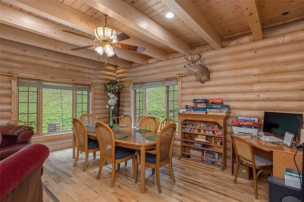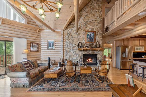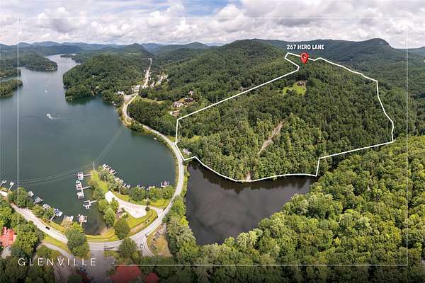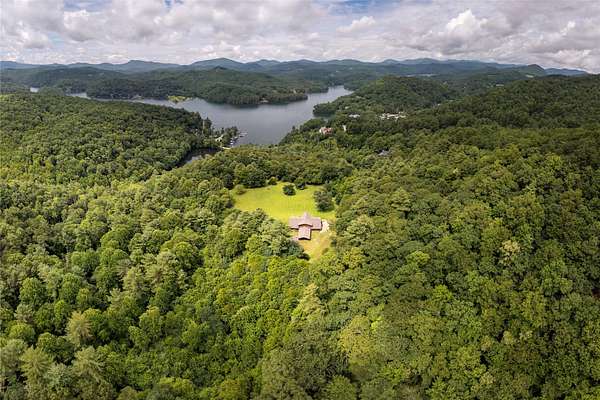 Opportunities like this don't come around every day! Owned by the same family for generations, now ready for the next chapter! Imagine living in a log cabin perched on a hill with breathtaking views of Lake Glenville, framed by the Blue Ridge Mountains. From this incredible vantage point, the home is nestled within approximately 112 acres of peaceful privacy. Designed for outdoor living, it features wraparound decking, a large grassy yard, and a patio with a fire pit. Relax on the deck and watch boats on the lake or gather with loved ones for cozy evenings by the fire. Inside, the traditional log cabin charm is highlighted by oversized windows that reveal the natural beauty of your surroundings. A stone fireplace adds warmth to the inviting great room. An upstairs loft and additional living space downstairs provide ample room to spread out and entertain guests. In addition to the exceptional views, the expansive property features pond and stream frontage. Direct access to Jenkins Lake is the perfect spot to add a dock for fishing or simply as a launching pad for your pups to enjoy the cool, refreshing water. For those looking to build a custom creation, this home is a great starting point for constructing a dream home on the property, with an excellent, flat building site located just above the house. The site is just one of many on the property, offering privacy, a usable yard, and breathtaking long-range views of the mountains and lake. Located just minutes from downtown Cashiers, this large tract of land offers endless possibilities. Whether creating a family compound, exploring development opportunities with potential homesites providing stunning views, or enjoying it as a private mountain retreat, the property delivers unmatched versatility. And with a successful vacation rental history, the home provides an immediate opportunity. It is a haven for outdoor enthusiasts, complete with hiking and UTV trails within the private property, easy access to Lake Glenville, and the cozy town of Cashiers. The home has two boat slips at Cedar Point that are not included but could be purchased. The possibilities of this property are truly limitless!