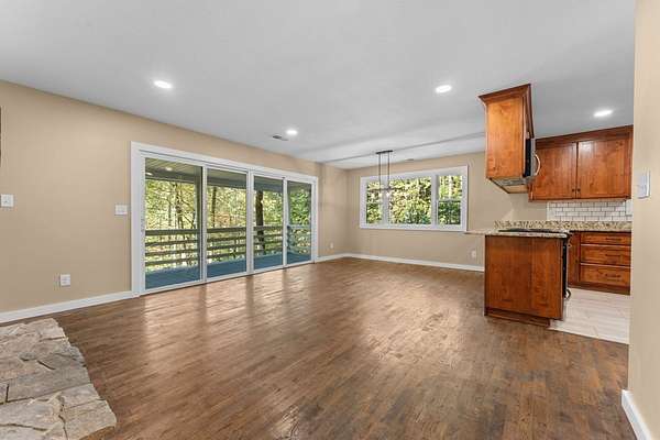 Step inside this beautifully renovated 4 bedroom, 2-bath home, where comfort, charm, and the beauty of nature come together. From the moment you arrive, you'll feel a sense of peace and the soothing sound of a rushing creek down below. The living room invites you to unwind beside the wood-burning fireplace, creating the perfect setting for cozy evenings with family or friends. The home's thoughtful updates blend modern convenience with timeless mountain warmth, making every space feel both fresh and familiar. Featuring a whole house generator, you will have peace of mind during all seasons. Step out back, and you'll find your own private gateway to the U.S. Forest Service land, offering endless opportunities for hiking, exploring, or simply taking in the quiet stillness of the woods. Whether you're sipping coffee on the porch or sitting near the outside fire-pit looking at the long range mountain view, this property is a place where life slows down and every day feels a little more special.