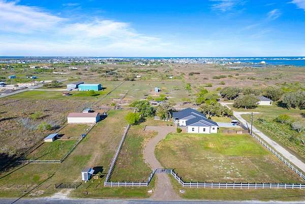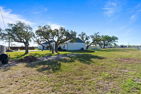 Welcome to The Salty Peach Farm, a rare turnkey homestead opportunity set on approximately 5 beautiful acres just minutes from Rockport Beach and the coastal charm of Rockport, Texas. This thoughtfully designed 3-bedroom, 2-bath home blends modern farmhouse style with functional country living, making it perfect for those dreaming of a peaceful homestead or hobby farm near the coast. Inside, the home features vaulted shiplap ceilings, quality finishes, and an open, inviting layout filled with natural light. The living and kitchen areas flow comfortably together, creating a warm and welcoming space ideal for everyday living or entertaining. The property also includes a detached 2-car garage with an added flex room/office, providing the perfect setup for working from home, a hobby space, gym, or additional storage. Step outside and enjoy a property that is fully prepared for homesteading and livestock. The groundwork has already been done with established garden beds ready for planting, a chicken coop, and a barn for storage or animals. Whether you envision growing your own produce, raising chickens, or simply enjoying the wide-open coastal acreage, this property offers the infrastructure to start immediately. With 5 acres of usable land, there is plenty of room for animals, outdoor projects, or future expansion while still maintaining a manageable footprint. Mature trees and open spaces create a peaceful setting where you can enjoy quiet country mornings and coastal breezes. Located just a short drive from Rockport Beach, marinas, dining, and shopping, The Salty Peach Farm offers the perfect balance of country living with convenient coastal access. If you've been dreaming of a move-in ready homestead near the Texas coast, this unique property is ready to welcome you home.