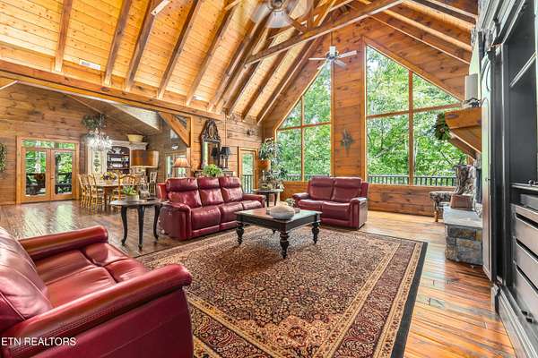 The stunning custom-built luxury cabin offering the perfect blend of privacy, comfort, and strong income potential. Ideally located just 20 minutes from Dollywood and 25 minutes from Gatlinburg, this property is an exceptional choice for both investors and those seeking a Smoky Mountain retreat. Spanning 4,608 sq. ft., the home features 3 bedrooms plus a bonus room used along with 4.5 baths. The cabin is currently equipped to sleep 12 guests but could easily be reconfigured to accommodate up to 20 with bunk beds and pull-out sofas, maximizing rental income opportunities. Similar homes in the area are projecting annual rental income of $200,000 or more, and this property conveys with a high-end furniture package valued at approximately $190,000. Designed with comfort and style in mind, the interior offers expansive open-concept living spaces, soaring ceilings, abundant natural light, and a gourmet kitchen that flows seamlessly into the dining and living areas-perfect for entertaining. Each bedroom is generously sized with en-suite baths, while the primary suite boasts a spa-like bathroom and a spacious walk-in closet. Additional highlights include multiple living areas, a guest half bath, ample storage, and inviting outdoor spaces surrounded by the natural beauty of the Smokies. Located in the exclusive Cedar Falls community, owners and guests will enjoy access to a variety of amenities, including a covered bridge entrance, community pool, playground, basketball court, catch-and-release pond, scenic nature trails, a creek, and a charming chapel that enhances the unique Smoky Mountain atmosphere. Whether you're seeking a proven income-producing investment or a private luxury getaway, this cabin offers the perfect combination of elegance, functionality, and location.