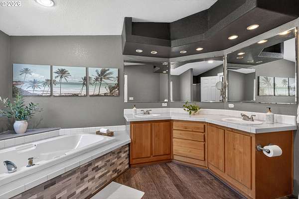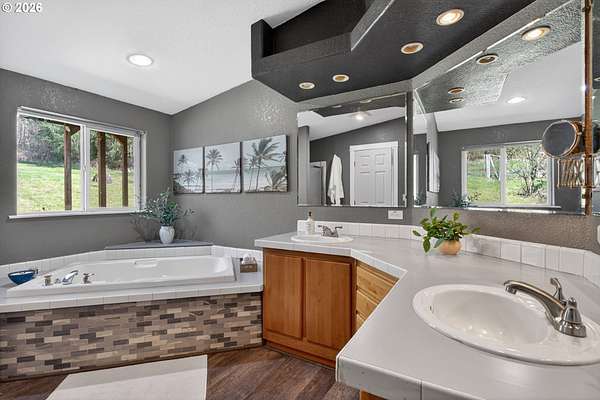 - Laundry, Skylight, Soaking Tub, Vaulted Ceiling, Vinyl Floor, Washer Dryer