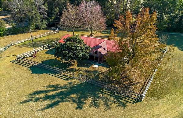 One or more photo(s) has been virtually staged. Experience the ultimate in rural serenity with this inviting 5-acre, move-in-ready equestrian property, tucked away on a peaceful dead-end road with a tree-canopied driveway in High Springs. Designed for horse lovers and hobby farmers alike, the property features a 4-stall center-aisle barn complete with stall mats, fans, and a climate-friendly, insulated tack room. Two fully fenced 2-acre pastures with a run-in shed provide ample space for your animals to roam. The land is naturally high and dry, with excellent drainage and no history of standing water. The residence is a fully renovated 3-bedroom, 2-bath country home offering total peace of mind, with a comprehensive renovation completed in 2026. This remodel included the kitchen, primary bathroom, guest bathroom, flooring, insulation, plumbing, subflooring, vapor barrier, and interior paint, creating a truly move-in-ready home. Additional highlights include a durable 50-year metal roof, a split-bedroom open floor plan, vaulted ceilings, and luxury vinyl plank flooring throughout the living areas and bedrooms. The brand-new island kitchen showcases tile flooring, modern cabinetry, stainless-steel appliances, and a brand-new range (2026). Both bathrooms were completely redesigned, including a spacious ensuite featuring a double vanity, oversized glass-enclosed shower with custom tile, and walk-in closet. A dedicated laundry room includes a premium front-load washer and dryer (2022) and built-in cabinet storage. Major system and structural upgrades include professional re-leveling and hurricane tie-downs completed in 2025. Additional improvements include a new well pump (2024), HVAC system and ductwork (2023), and hot water heater (2022). Outdoor living and infrastructure are equally impressive, featuring an expansive covered deck with a dedicated electrical line ready for a spa, a metal-roofed 3-bay pole barn, full perimeter fencing with gated entrance, and new three-rail interior fencing surrounding the home (2025). Unlike many rural properties, this home offers the convenience of both cable and fiber-optic internet. With no HOA or CDD restrictions, you'll enjoy the freedom to create your own private sanctuary just minutes from the Alachua County Agriculture and Equestrian Center, Easton Sports Complex, and the charming boutiques and restaurants of downtown High Springs. The location offers an easy commute to Gainesville and is less than an hour from the World Equestrian Center (WEC) and several of North Florida's most popular natural springs and state parks. Everything is ready for your next chapter--all that's missing are your horses and your sense of adventure. Schedule your private tour today and start living the lifestyle you've been dreaming of.
