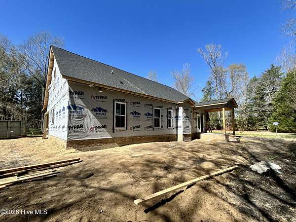 PRESALE - Welcome to the Olivia Plan built by Neuse Landing Homes on almost 2 Acres. This gorgeous home is packed with lots of great features on a wooded private lot. Featuring 2,031 sq. ft. of thoughtfully designed living space, offering 4 bedrooms, 3 full baths. The open-concept layout includes a bright family room flowing into a stylish kitchen with QUARTZ countertops, Custom Hood vent & SS Slide in Stove, a breakfast bar, tile backsplash, stainless steel appliances, and a pantry. The first-floor primary suite provides a relaxing retreat with a walk-in closet, dual vanity, soaking tub, and separate shower. Additional highlights include a walk-in attic for future expansion, a dedicated laundry room, covered front and rear porches, a 2-car side entry garage, and a large backyard. Stained front porch columns, Front Door with Transom, Custom Brick Accents on front of home. BONUS: Existing Detached Garage perfect for Storage or Hobbies. Looking to build your way - we have other lots available. Make your next move, your best move!
