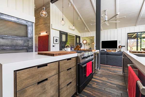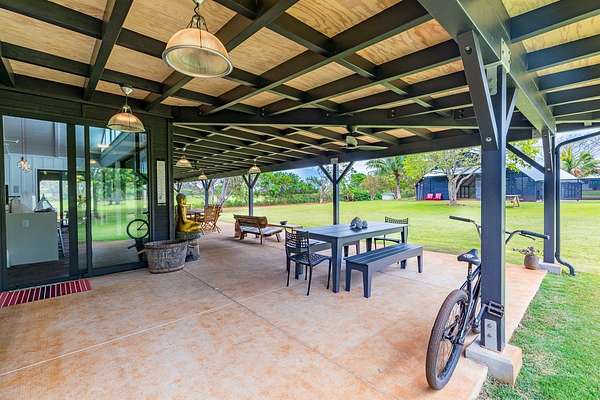 Set on nearly 12 acres along Kauapea Road, this property offers a rare opportunity to create a true North Shore retreat in one of Hawai'i's most desired neighborhoods. The land delivers scale, privacy, and room for future vision - yet the existing residence provides a comfortable, well-appointed base to enjoy immediately. The beautifully designed, contemporary, 1,152-sq-ft, 2-bedroom, 2.5-bath home is outfitted with durable, thoughtfully selected materials and features, including: - Distressed oak floors - White-washed teak walls - Caesarstone kitchen countertops - Stainless appliances - Interior/exterior Sonos sound system - Backup gas generator - Tesla charging station More than 1,700 sq ft of covered wraparound lanais extend the living space outdoors, opening toward mountain views of Namahana and the planned location for a future pool. Opportunities of this size on Kauapea are uncommon. The acreage supports multiple paths - from maintaining a simple, functional North Shore hideaway to executing a larger estate plan. All of this sits just minutes from the Kilauea Lighthouse, the shops and dining of Kilauea town, and Princeville's renowned golf. World-class beaches and North Shore amenities remain close at hand, while the property itself offers space, quiet, and possibility. Secret Beach pedestrian and vehicular access may be included in the sale. Inquire for further details.