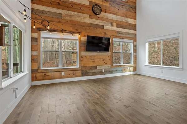 Tucked away on 3.47 wooded acres across from Engelheim Vineyards, this charming mountain home/cabin offers a rare blend of privacy, natural beauty, and convenience-just minutes from the charm of downtown Ellijay and Jasper. Also located just 10 minutes from the Doll Mountain Boat Ramp at Carters Lake, this property is ideal for enjoying boating, hiking, and all that North Georgia has to offer. Previously used as a short-term rental, this property presents flexible options for investors, full-time residents, or those seeking a private weekend escape in the mountains. With peaceful forest views and mountain surroundings in every direction, the setting feels like a private retreat while remaining close to town and outdoor recreation. Designed with sustainability and wellness in mind, the home showcases unique architectural character throughout. Natural wood elements take center stage, including tongue-and-groove ceilings, handcrafted wood countertops, open shelving, hardwood floors, and a striking reclaimed wood feature wall. The kitchen is both stylish and practical with fingerprint-resistant stainless steel appliances and a farmhouse sink, while sliding barn doors and brick tile in the bathroom add timeless farmhouse touches. The layout includes a loft-style bedroom with closet, a built-in office or creative workspace, and clever storage beneath the staircase. Large windows fill the home with natural light and provide tranquil views of the surrounding landscape. Additional features include a deep soaking tub, washer and dryer, whole-house water filtration system for the private well, and a long-lasting metal roof. Outdoor living is a highlight with a deck overlooking the peaceful property-perfect for morning coffee, evening sunsets, or watching local wildlife. A 12' x 16' outbuilding offers excellent storage, and the acreage includes an additional county-approved building site, allowing for future expansion or an additional structure.