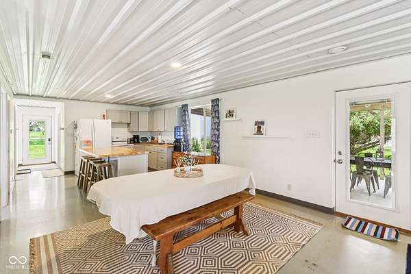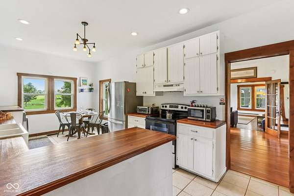 Historic farm with privacy and room to grow! Long drive leads to adorable farm house, additional guest house and original horse barn! Enclosed front porch with mission style front door leads to main living space with dark hardwoods, windows encased in dark wood and provide tons of natural light for that cozy farm house feel. Beautiful French doors open to the formal dining room. Eat in kitchen with tile floors white farm style cabinets, farmhouse sink, butcher block counters, and stainless appliances. Updated full bath with tub/shower combo. Owners suite conveniently located on main level. Two additional bedrooms on main are located to the back of the home for additional privacy. Upstairs loft and two additional bedrooms up have new carpet. Home has unfinished attic storage accessible by door. Second home is open concept! Kitchen has light grey cabinets, center island with storage, butcher block counters and white appliances. Spacious living room with tons of windows overlooking the property. Two bedrooms and a full bath with shower complete the unit. Covered porch on main house and second home perfect for entertaining! Two car garage and solid animal barn make this the perfect homestead! Mature trees, plenty of wide open space, charm abounds with this property!