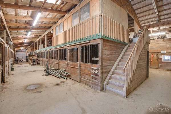13 Acre Rare find - This equestrian center spans over 13 acres and features a 42-stall barn with an attached 2-bedroom home. Experience unparalleled equestrian facilities with multiple fenced areas, an indoor arena, entry area with a window, upstairs hay storage with a lift, saddle room, office, workshop, and more. The barn alone boasts over 10,000 sq. ft., with 2 additional outbuildings for sawdust storage and garage/trailer storage. Enjoy the convenience of an easement allowing horses to access all fenced areas on both sides of the property. Unlike other properties, there are no HOA regulations here! This offering includes 4 parcels: 8.5 acres with barns, stalls, and house, plus an additional 4.5 acres across the main entrance road. The owner is open to separating parcels for sale, and C.A.U.V. taxes apply. Nestled against Landen Park in a prime location, this property is truly a gem. *Home does need work*