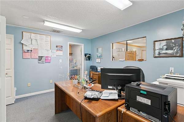 The property includes two large buildings, each with finished office space and attached warehouse or shop space, plus a separate block building previously used as an automotive paint booth. This setup makes it ideal for contractors, service-based companies, auto repair, builders, landscapers, or anyone needing a mix of workspace and customer-facing office space.