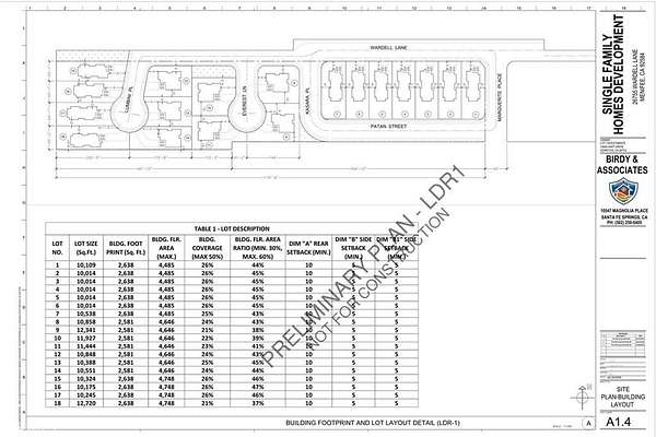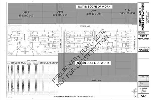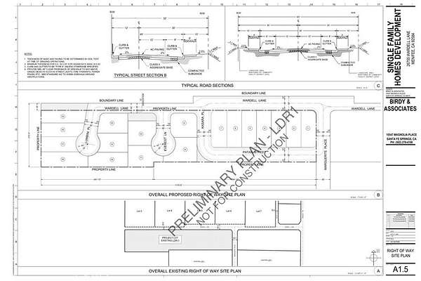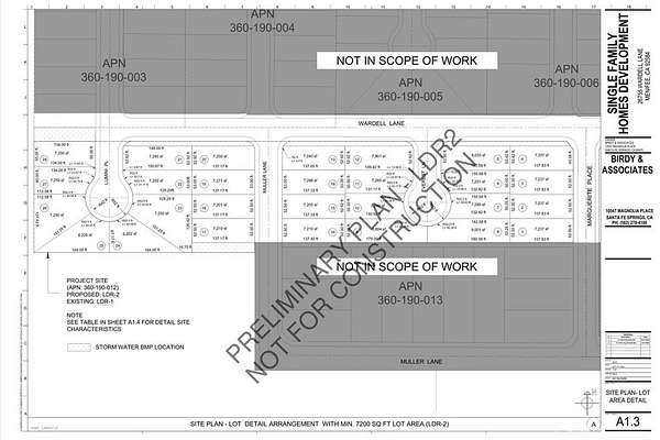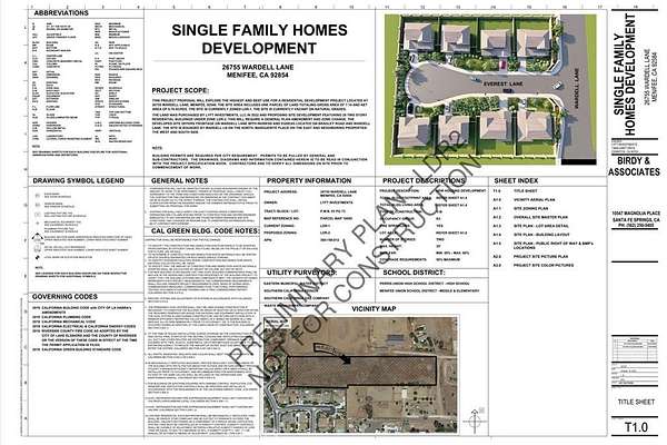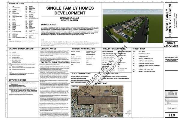 Engineering Plans: Pre-planning design drawings prepared by BIRDY & Associates, a registered California engineering firm, with further consultation available for developers.