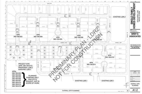 Lot Sizes: Proposed lots range from approx. 7,200 sq. ft. (LDR-2) to 10,000 sq. ft. (LDR-1).