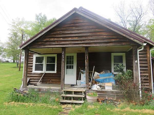 Attention fixer-uppers! This adorable cottage sits on a picturesque 2 acre property of mostly open land with a small wooded section to the rear and mature landscaping. Situated back off the main road, this property features peace and quiet to enjoy the covered front porch. The cottage has a bedroom and bathroom on the main floor with a second bedroom upstairs. Some renovations were started, but not completed so, this home is ready for your touch. Property also features an outbuilding and a two-car detached metal carport.