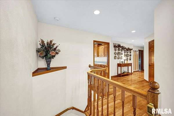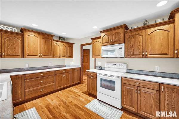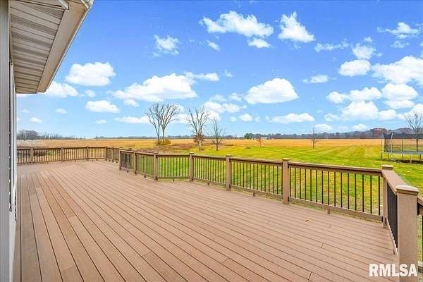 Find your way home to this wonderful one-owner ranch, set on over 12 serene acres. This custom 5 bed, 3 bath property offers 3,563 sqft. Hardwood floors flow through the main living spaces. The spacious family room features a cozy gas fireplace framed by gorgeous windows, offering peaceful wildlife views, and stunning cathedral ceilings. The kitchen is built for entertaining with a peninsula bar and beautiful Amish custom cabinetry. The main floor includes two bedrooms and a large shared bath. The oversized primary suite features a walk-in closet and ensuite, conveniently located right off the laundry/drop zone with a half bath perfect access from the heated three-car garage. Entertaining is easy on the 48'x30' no-maintenance deck. The acreage includes a spectacular 54'x75' Morton Building with 16-foot sidewalls for vertical clearance. It features heavy-duty 6-inch concrete floors and expansive 24-foot sliding doors ideal for all your farming, equipment, or recreational storage needs. The walk-out basement has two additional bedrooms, a living room, and plumbing for a 4th bath, plus a potential pond location right outside. Features include geothermal HVAC, two water heaters, and zoned comfort. This property is ready for hunting, entertaining, and quiet country enjoyment!