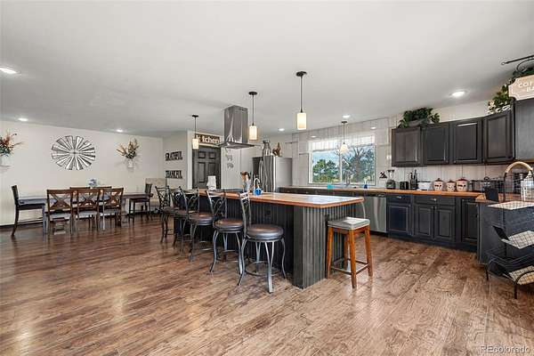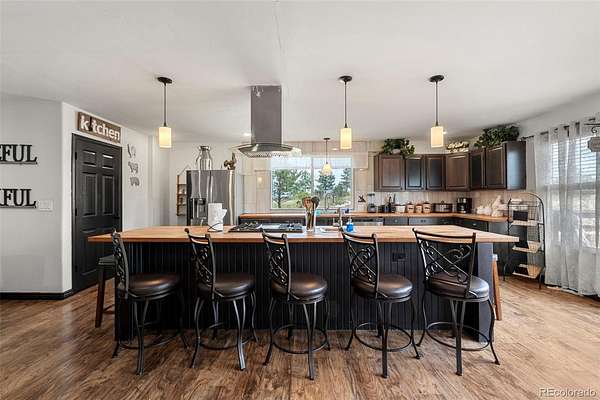 This spacious ranch-style property along Highway 24 in Calhan offers incredible Pikes Peak and Front Range views along with a flexible layout ideal for multigenerational living or a live/work setup. The home features a walk-out lower level with private access, complete with a full second kitchen and laundry, making it perfectly suited for an in-law suite or guest quarters.