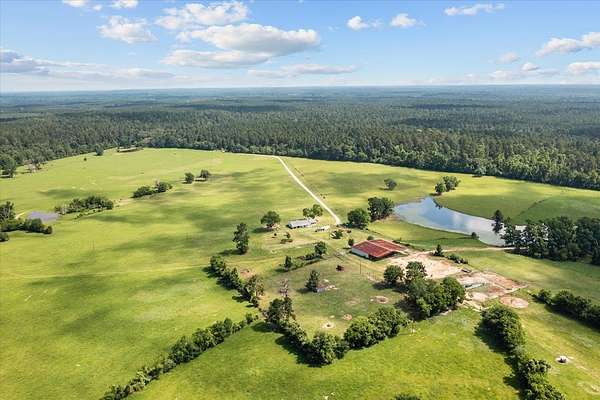 This property provides an incredible opportunity to own 665.252 expansive acres. This large tract gives you all the privacy you could ever want being bordered on three sides by the Davy Crockett National Forest and the south east corner bordered by White Rock Creek. This ranch offers lush pastures - fenced and cross fenced into 15 different pastures and hay fields. There are 14 lakes and ponds scattered throughout the property, with the largest lake being 16-acres and stocked with bass and brim, offering excellent fishing! In addition to great fishing, the owner reports great hunting - deer, hogs, and duck! Regenerative ranching practices have been employed for several years to promote soil health and increase forage production resulting in a return of native grass species and a burgeoning bird population. Centrally located on the ranch, you will find a nice-ranch style two bedroom, two bath home that is getting a new roof, 90'x95' barn, and cattle working pens. Call today for details!